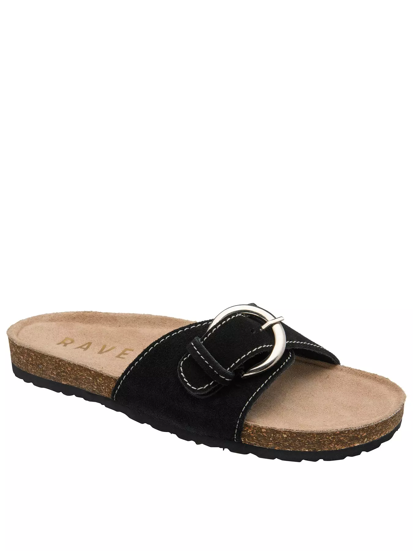 Effortlessly stylish with a refined edge, the Salton slider by Ravel is a modern essential for warm-weather dressing. Crafted in soft suede, this easy slip-on style features a wide single strap finished with a bold gold-tone buckle, adding a polished accent to its relaxed silhouette. Designed with a contoured, cushioned footbed and a cork-style midsole, Ravel's Salton delivers all-day comfort with a naturally on-trend feel. Versatile and easy to wear, this chic women's slider pairs seamlessly with everything from flowing dresses and linen separates to casual denim, making it a go-to choice for both city days and holiday styling.- Heel Height: up to 2.5 Inch