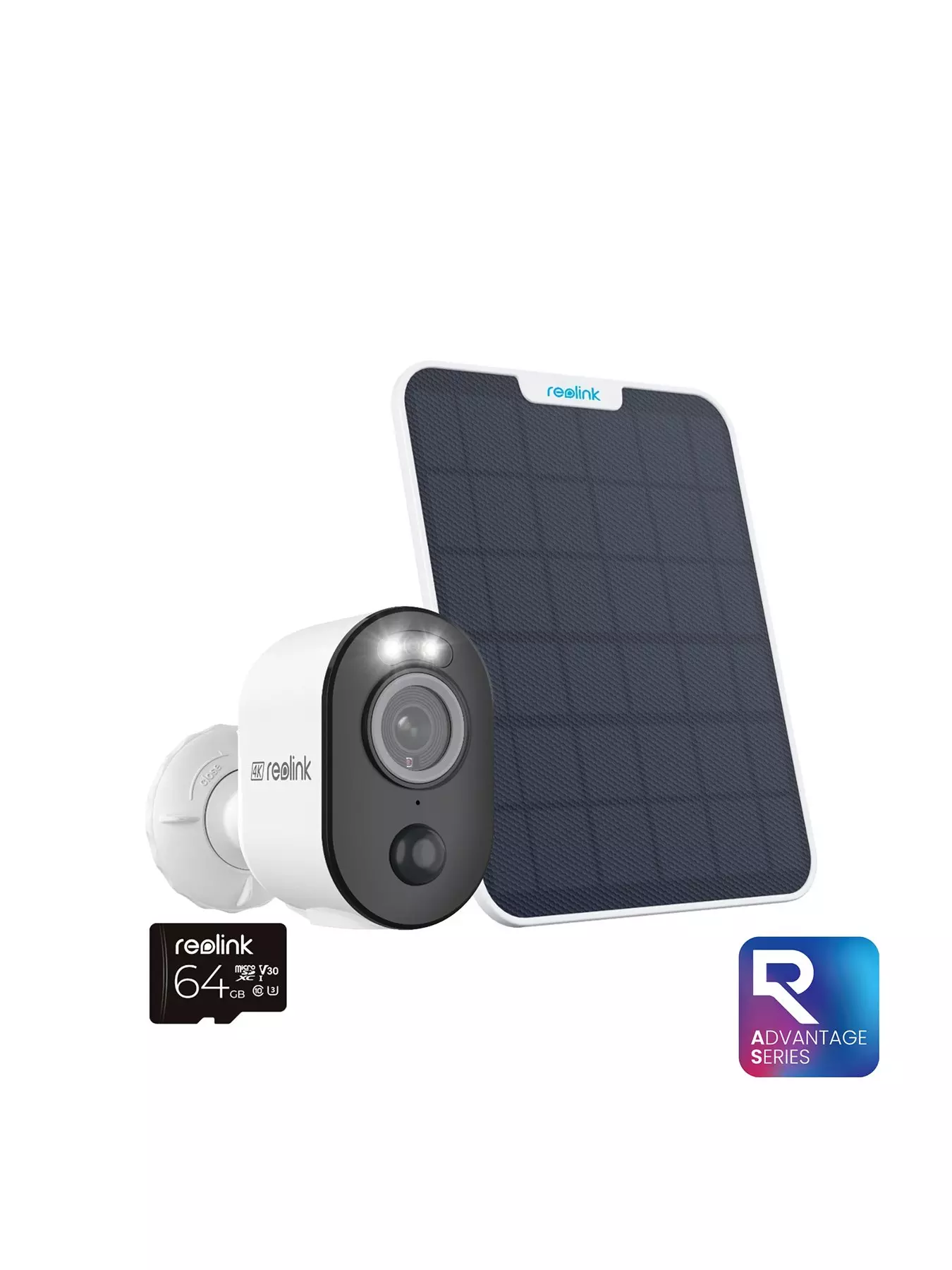 Reolink4K Wi-Fi Battery Outdoor Security Camera, Color Night Vision, 2.4/5GHz Wi-Fi, Argus Series B350&Solar Panel 2+64GB SD Card
