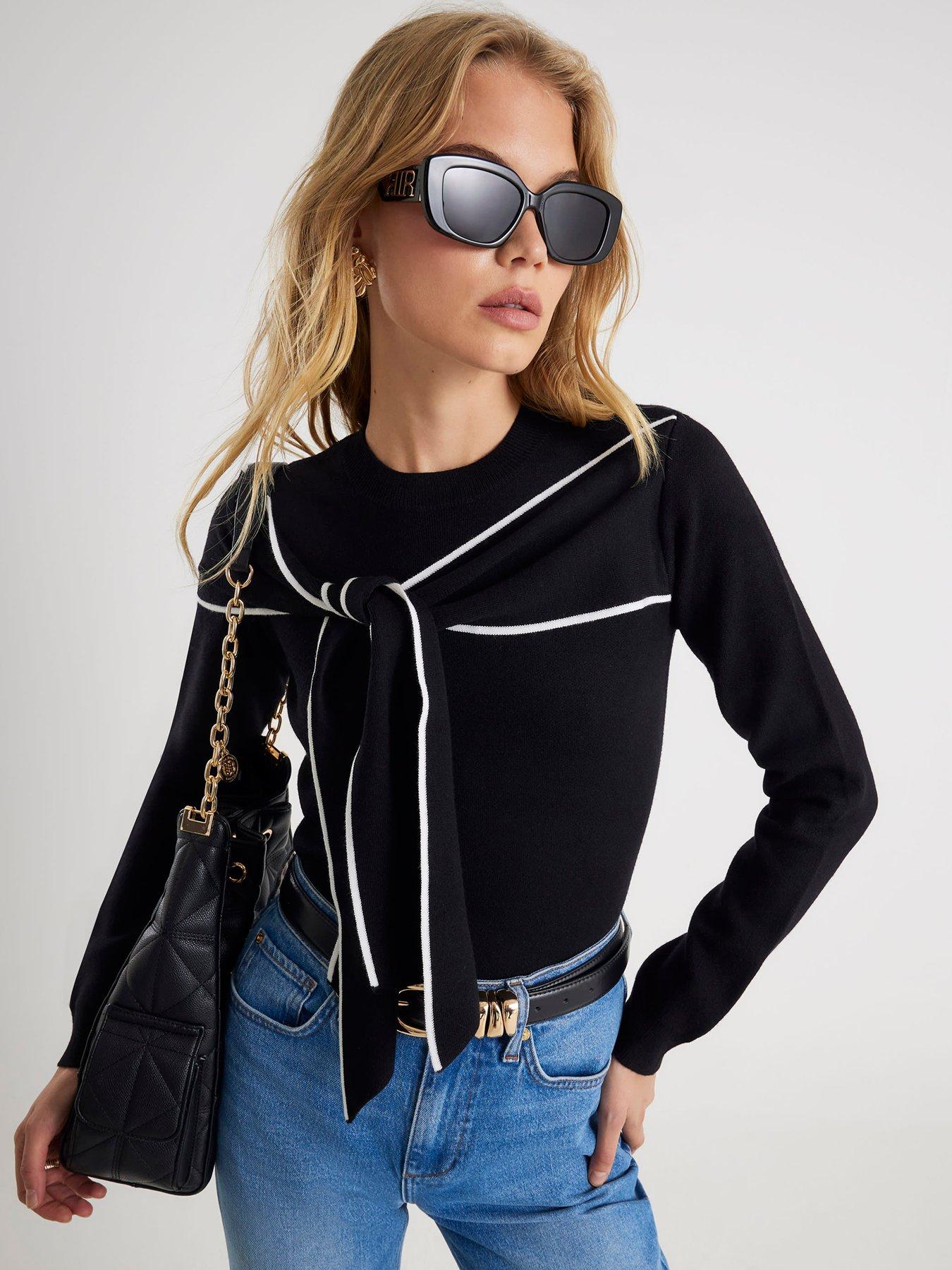 • outfit image of river-island-long-sleeve-mono-tipped-bow-knit-jumper-black