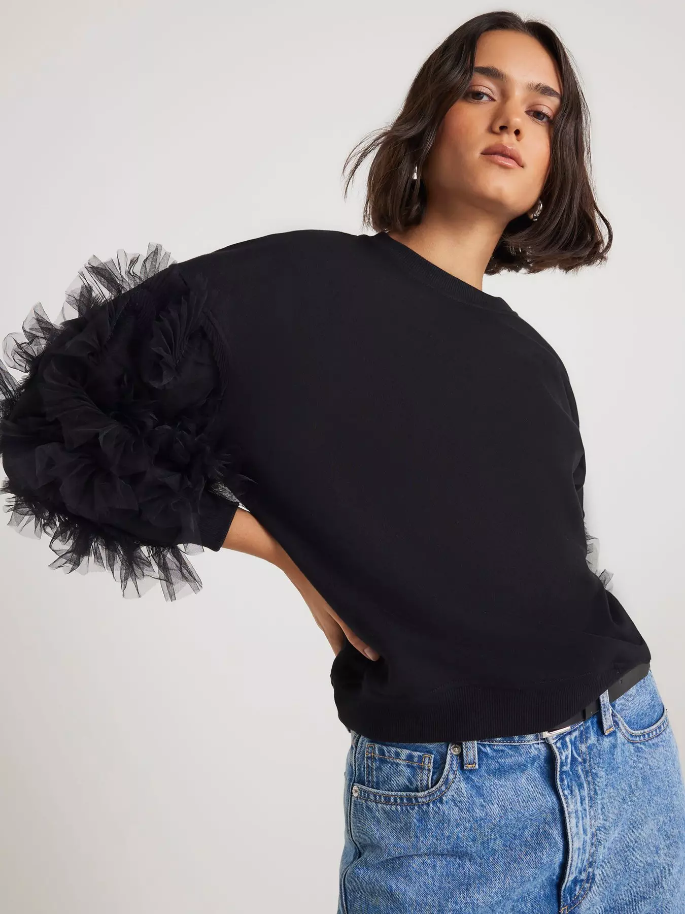 River IslandLong Sleeve Ruffle Sleeve Sweatshirt - Black