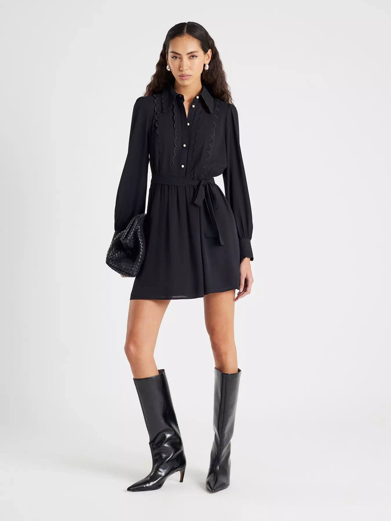 River IslandLong Sleeve Scallop Shirt Dress - Black