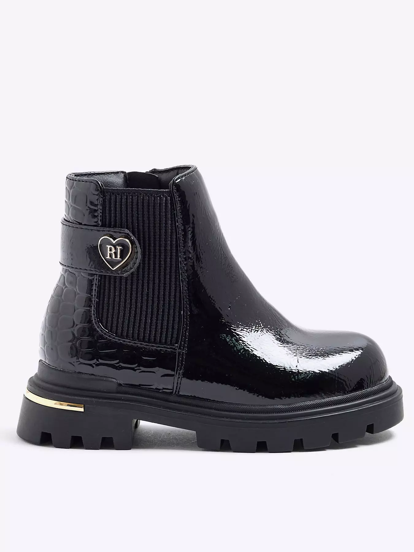 River Island MiniGirls Heart Strap Chelsea Boots - Black
