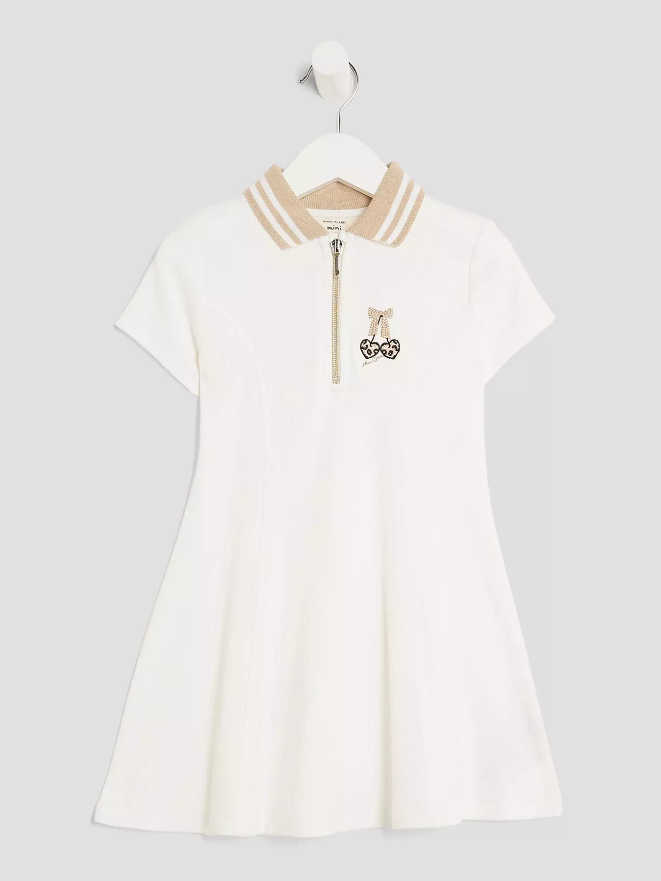 - Girls Ribbed Leopard Cherry Bow Dress - White by River Island Mini