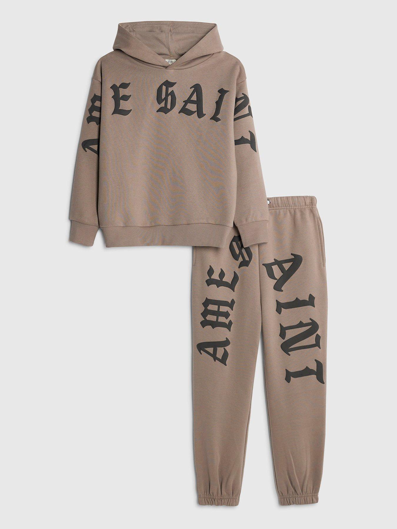 • detail image of river-island-older-boys-ame-saint-hoodie-set-brown