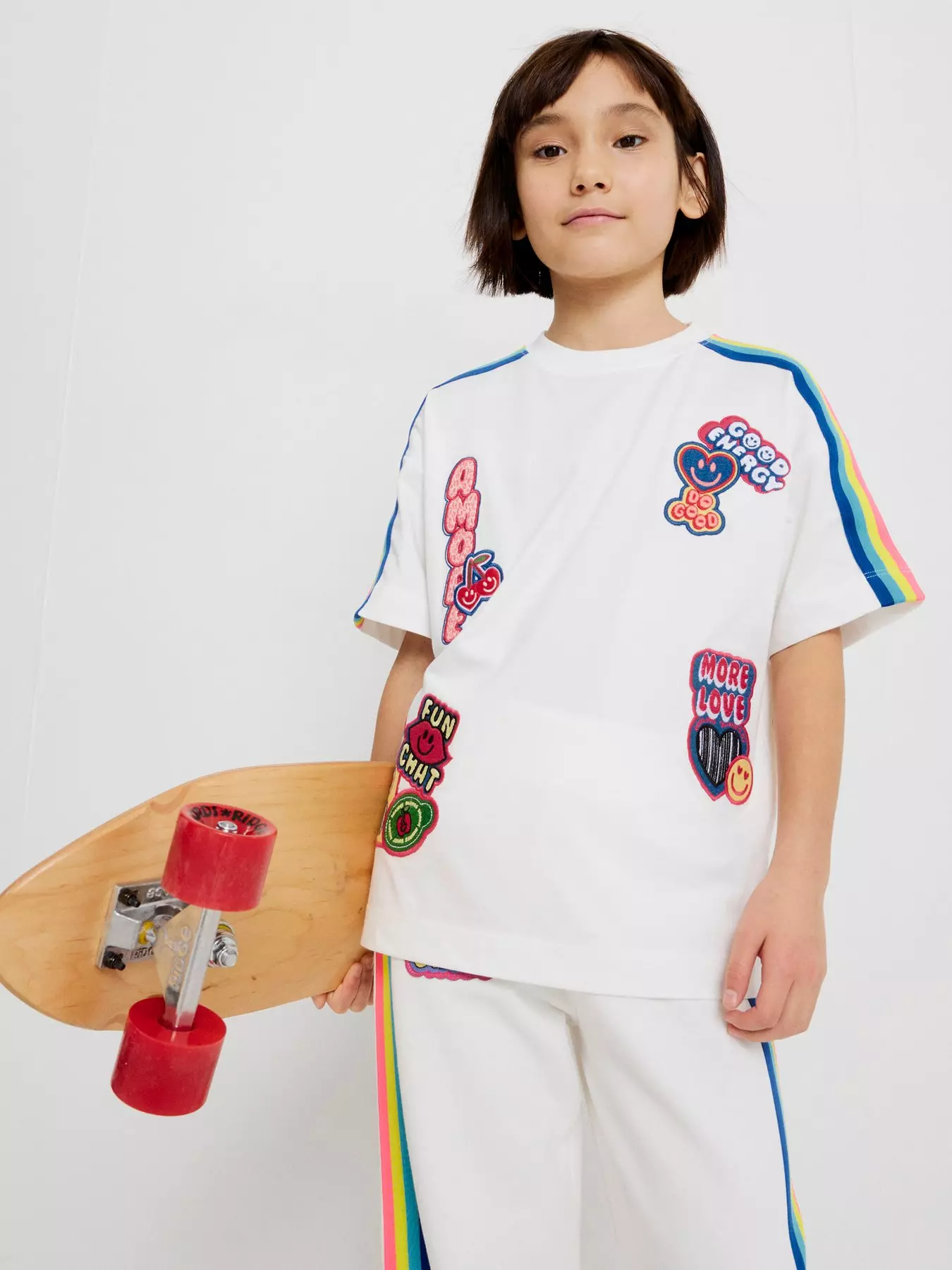 - Older Girls Badge Rainbow Stripe T-Shirt by River Island
