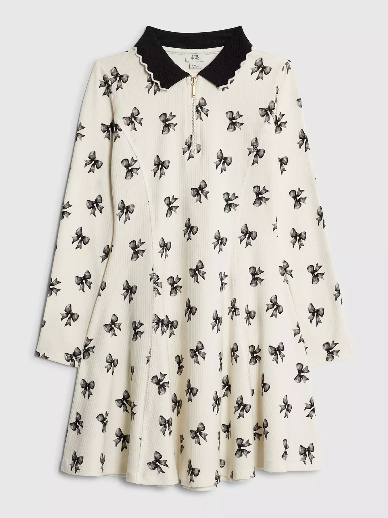 - Older Girls Bow Print Ribbed Polo Dress by River Island