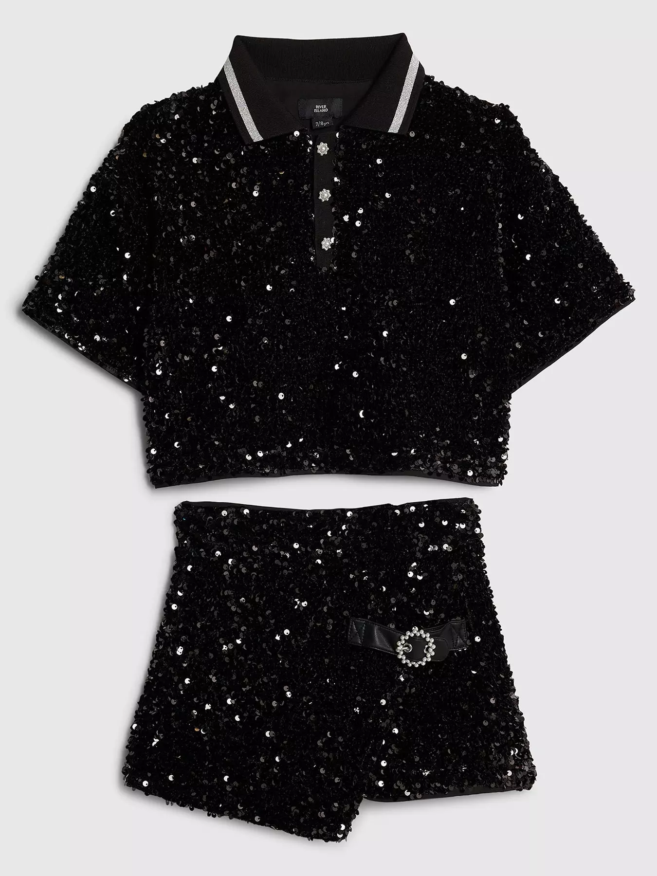 River IslandOlder Girls Sequin Polo Top And Skort Set - Black