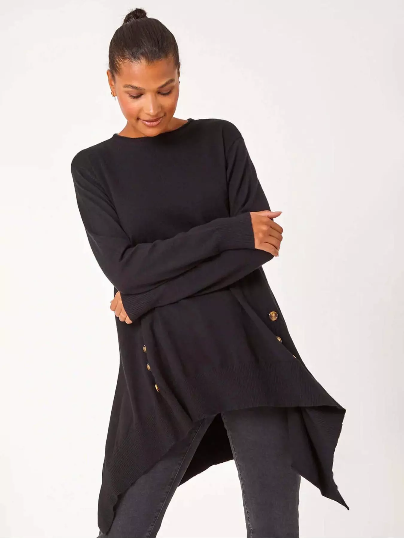 E.A.N: 5 0 6 3 0 2 6 8 7 2 6 2 9Roman Buttoned Side Hanky Hem Jumper - Black