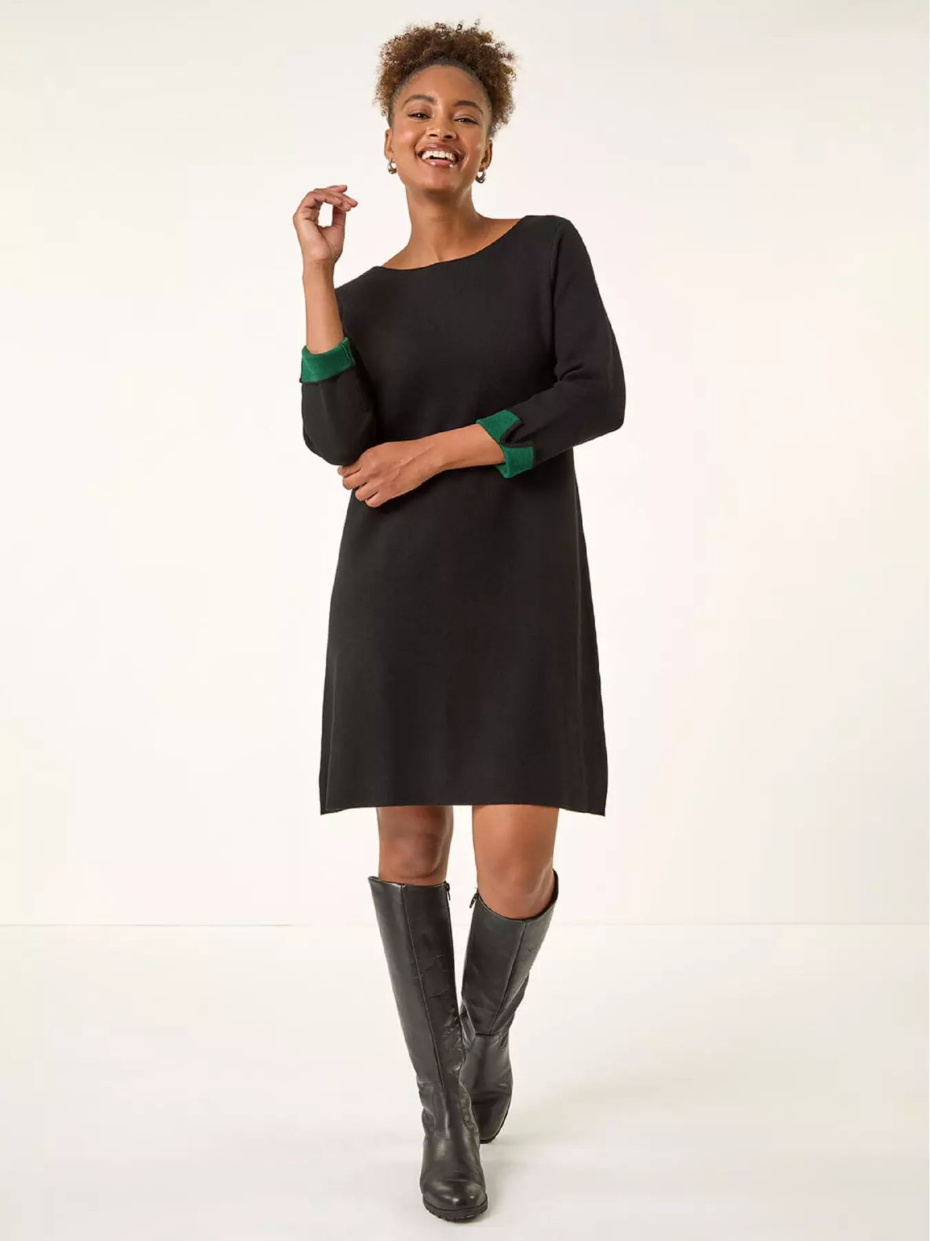 Roman Contrast Sleeve Knitted Shift Dress - Forest