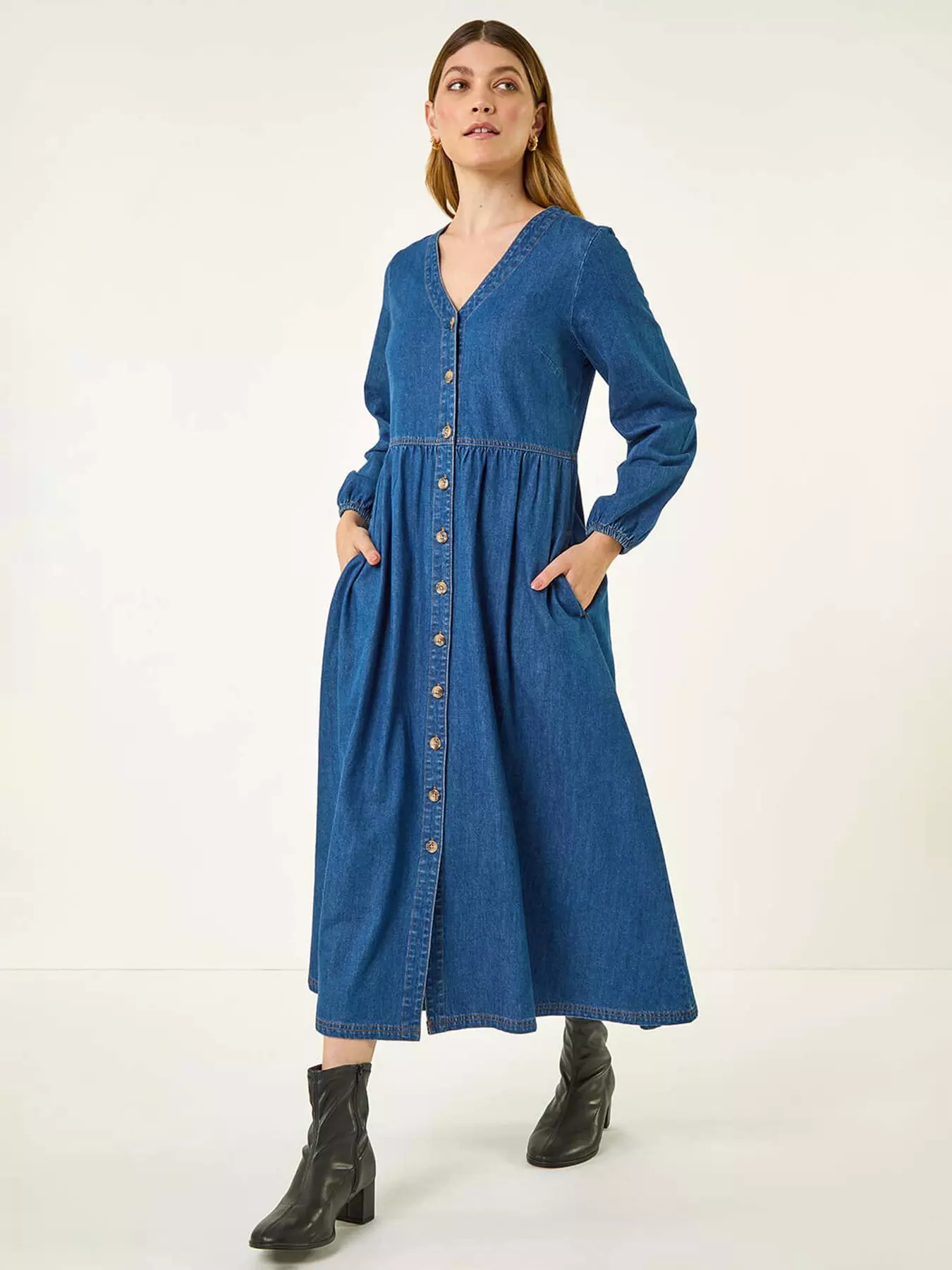 E.A.N: 5 0 6 3 5 6 6 4 7 1 8 7 0Roman Denim Button Midi Dress - Blue