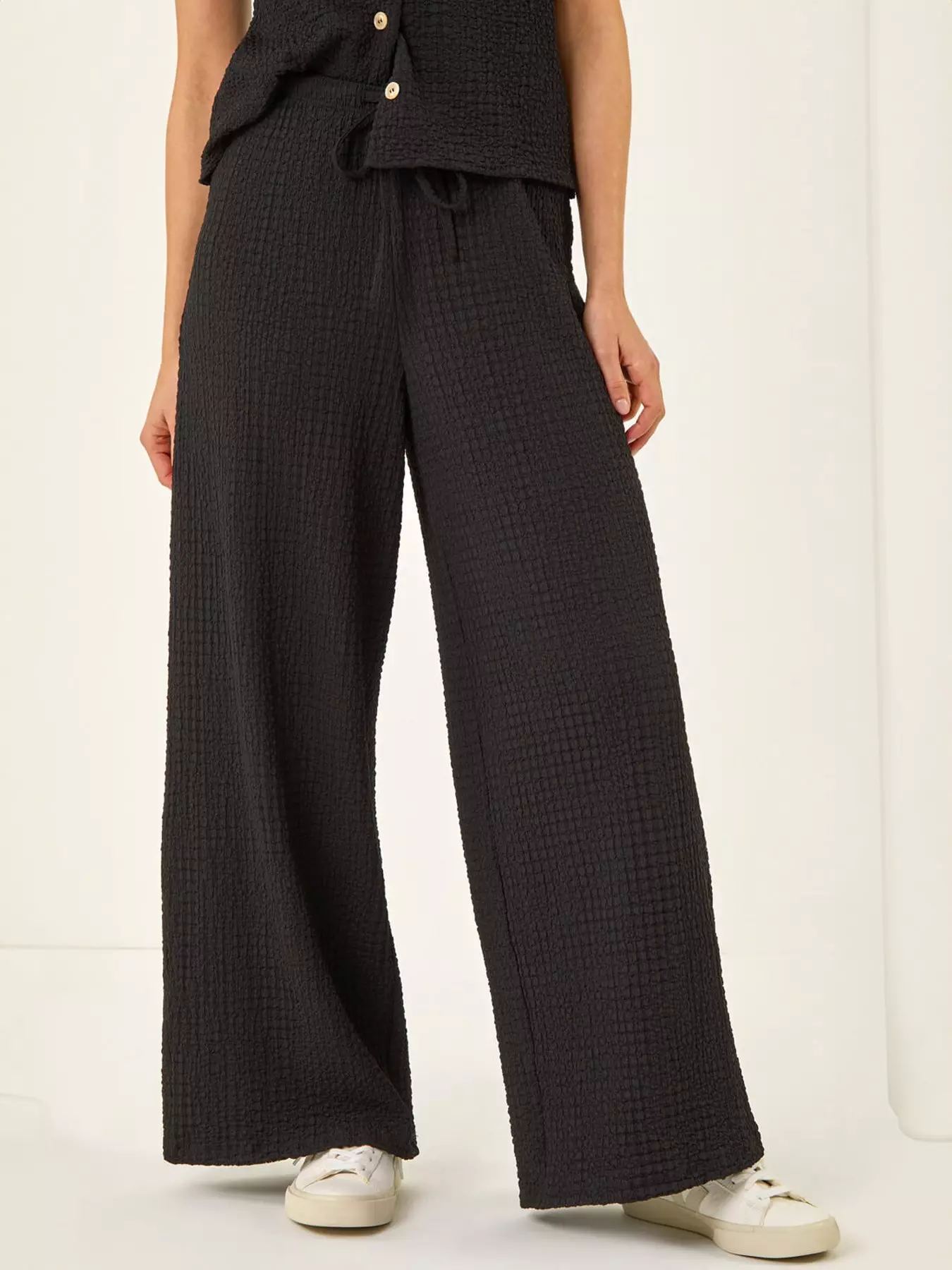 Step into the warmer months with effortless style in these crinkle wide-leg trousers. The textured fabric gives these full-length trousers a unique touch while the elasticated waist and pull-on style ensure all-day comfort. For a coordinated look pair them with a matching top (10227008) and jacket to stand out in style this Spring Summer!- Additions: Inside Leg Length: Approx. 73cm
