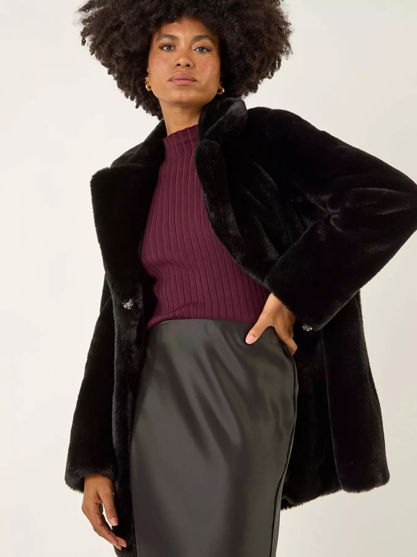 Roman Faux Fur Longline Coat - Black