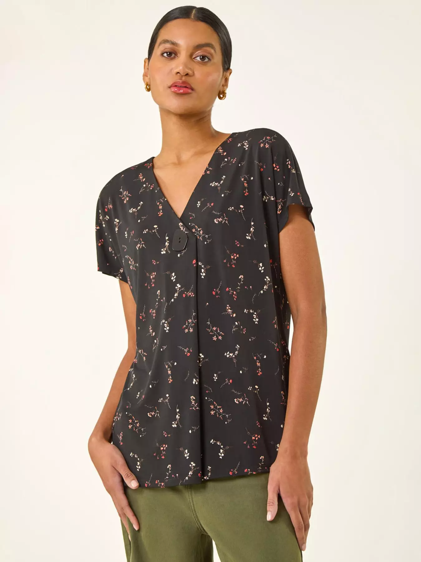 Perfect for adding a pop of floral freshness to your outfit this v-neck jersey top is a must-have this Spring/Summer season. Featuring a vibrant all over floral print this top has short sleeves and finishes at the low hip for a flattering fit. Pair with your favourite jeans and trainers for a casually chic look that's ready for any sunny day adventure!- Material Content: 95% Polyester 5% Elastane