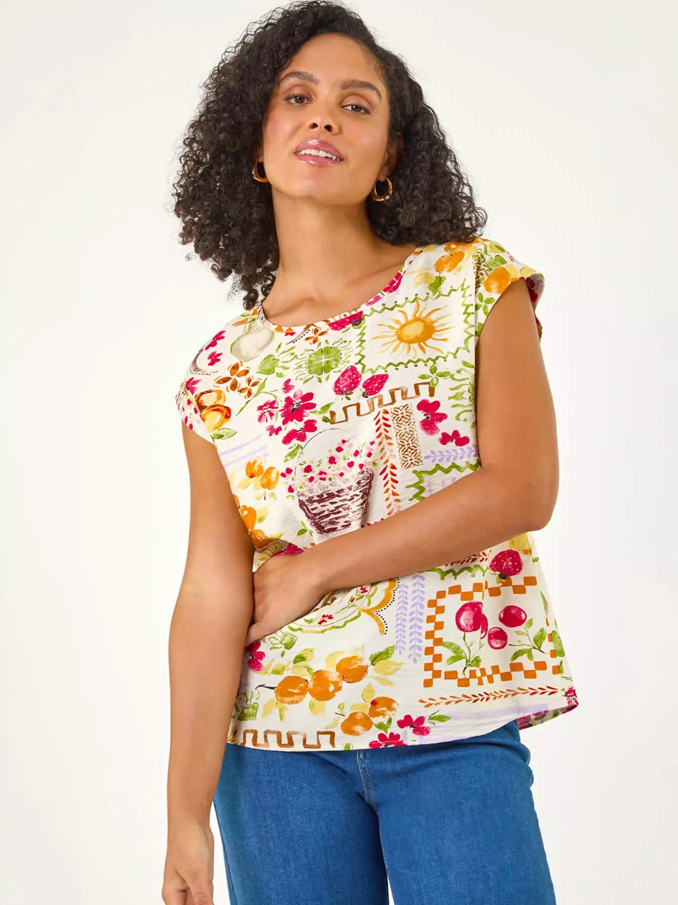 Add a fun twist to your Spring/Summer wardrobe with this fresh fruit print shell top. Featuring an all-over fruity print this top is perfect for adding a pop of color to your outfit. The round neck and short sleeves provide a comfortable and casual fit. Pair with shorts and trainers for a playful and stylish look that's perfect for sunny days out!- Additions: Length Approx. 65cm
