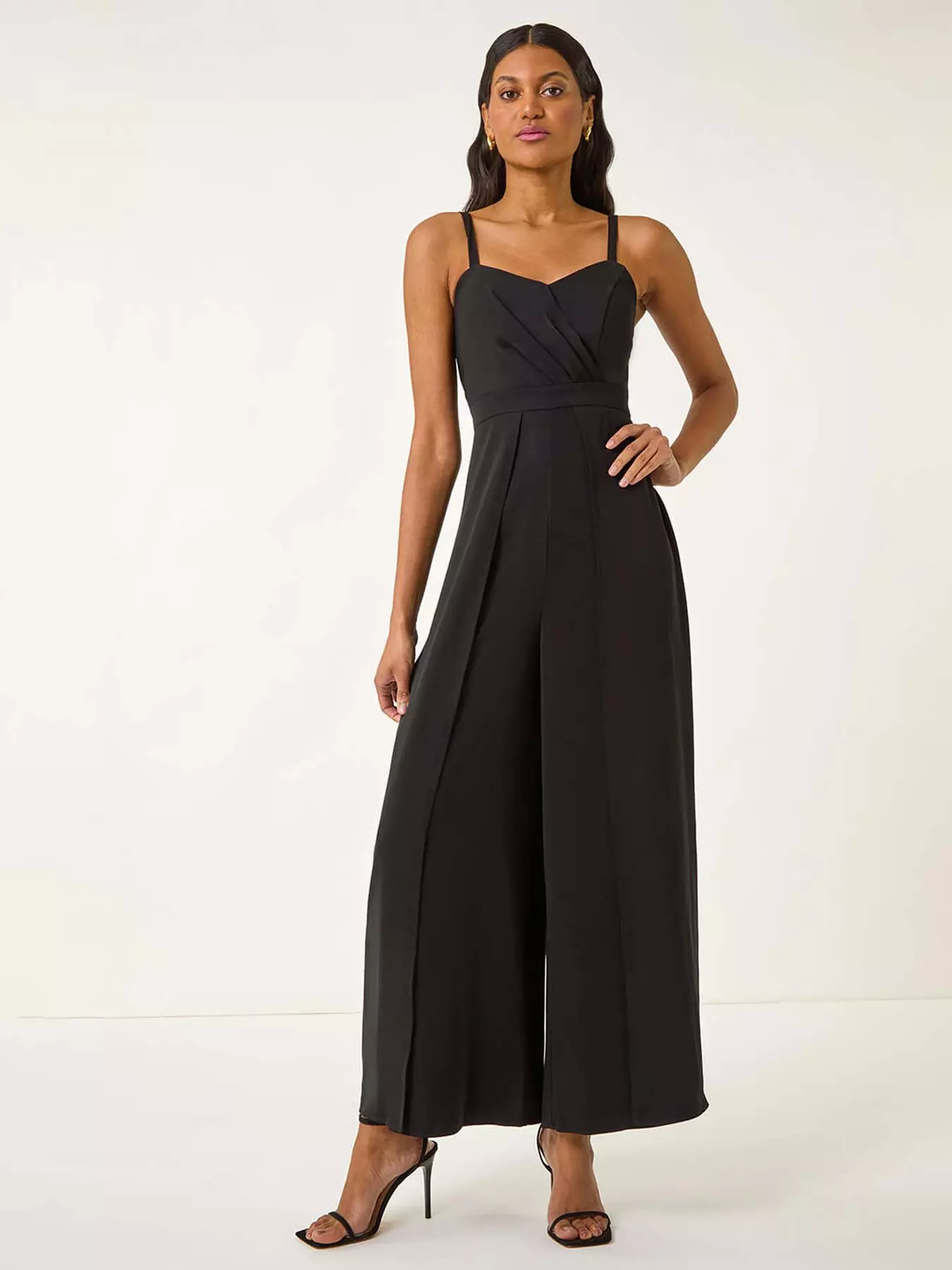 Make a sophisticated statement in this elegant black jumpsuit. The sweetheart neckline adds a touch of glamour while the pleated front detail elevates the look. With a flattering full length finish this jumpsuit is perfect for any special occasion. Pair with heels and a blazer for a polished and chic ensemble.- Material Content: 100% Polyester Lining: 100% Polyester