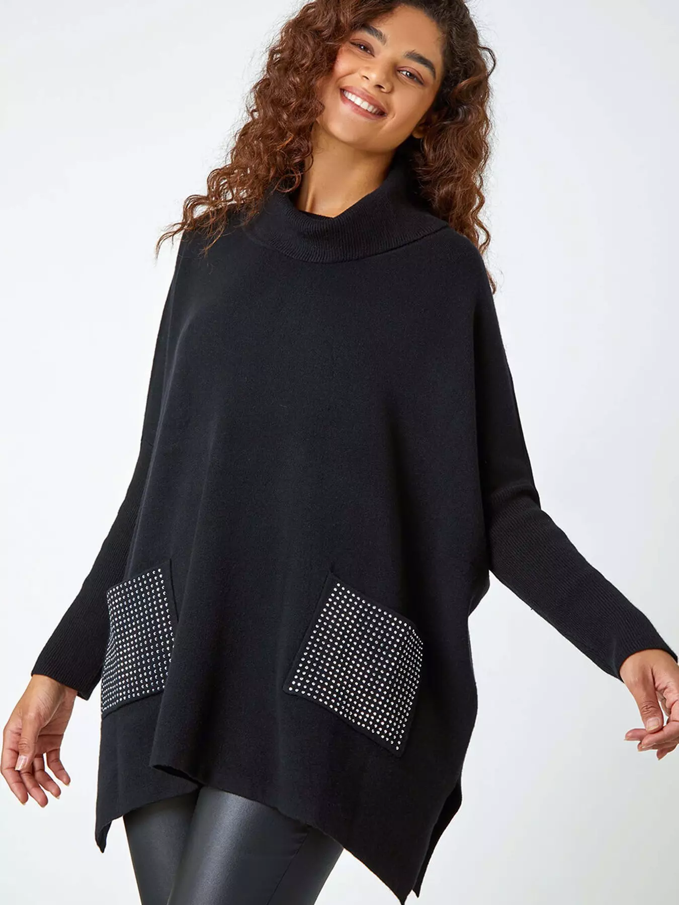 E.A.N: 5 0 6 3 0 2 6 4 7 5 9 7 4Roman Sparkle Pocket Poncho Jumper - Black