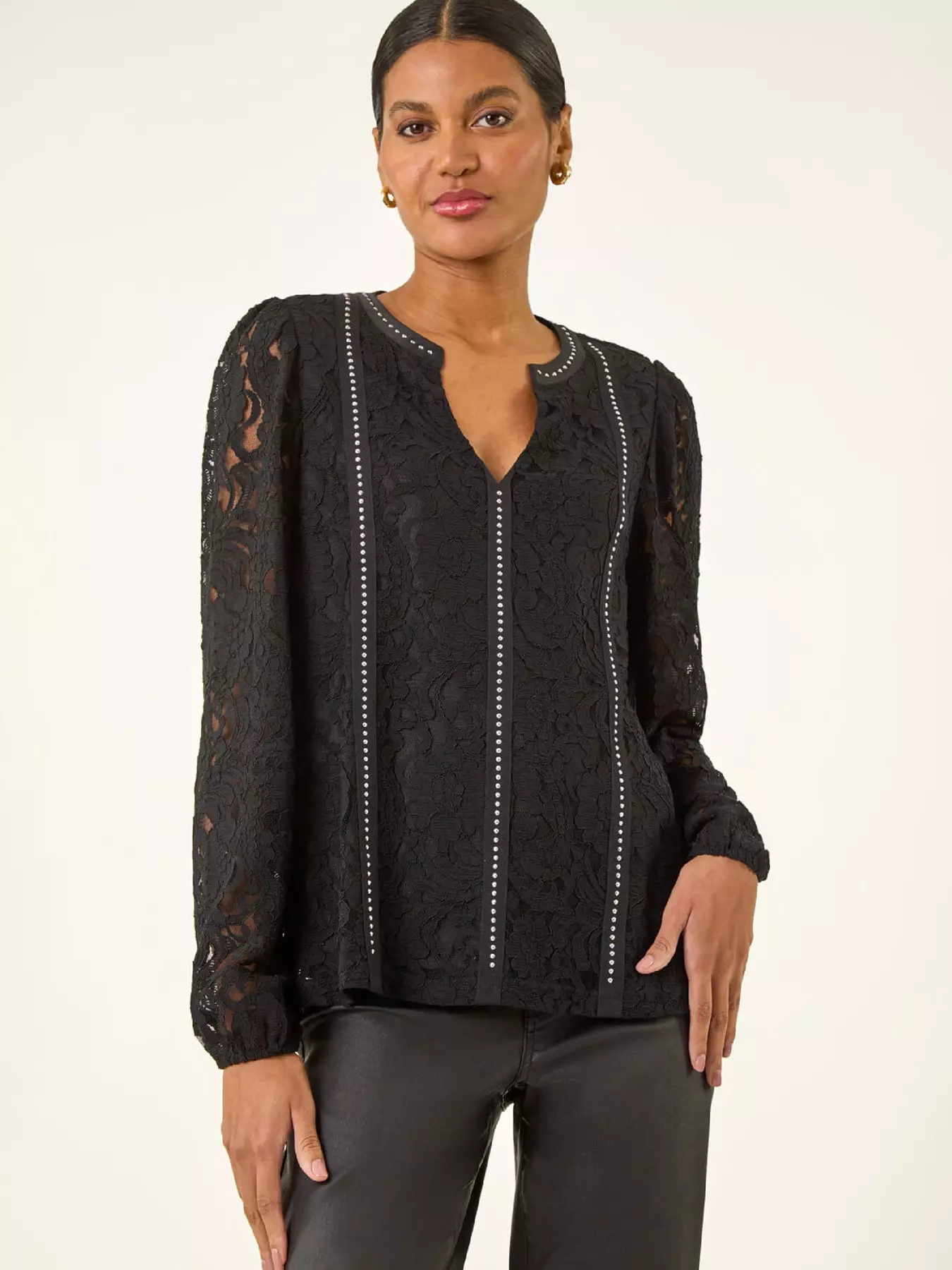 E.A.N: 5 0 6 3 5 6 6 5 1 5 0 8 6Roman Studded Lace Notch Neck Top