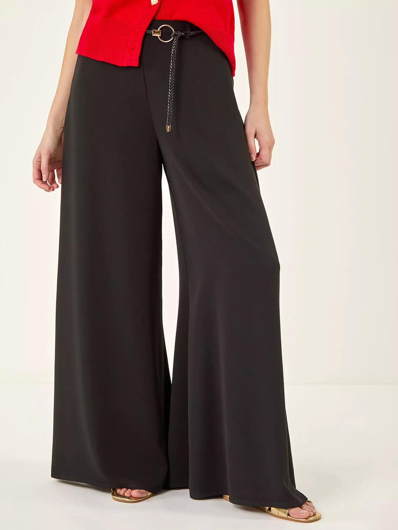 Elevate your Spring Summer wardrobe with these chic wide leg belt tie trousers. Crafted from a comfortable woven fabric these wide leg trousers feature a stylish belt tie detail for a flattering fit. Perfect for any occasion pair with a smart blouse and jacket for a complete look that exudes sophistication!- Material Content: 100% Polyester