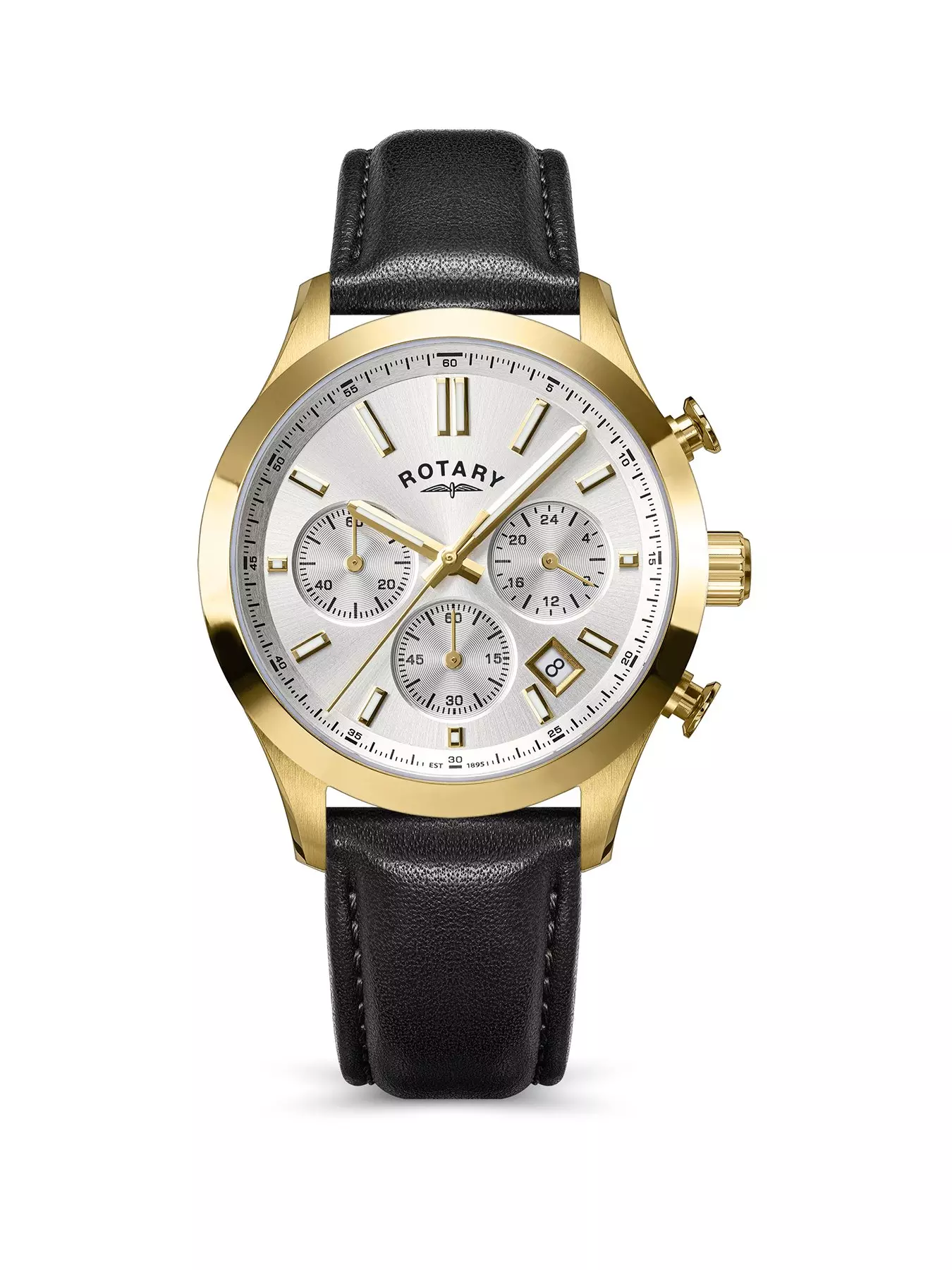 RotaryMen's GP Chronograph Black Strap Silver White Dial 50m