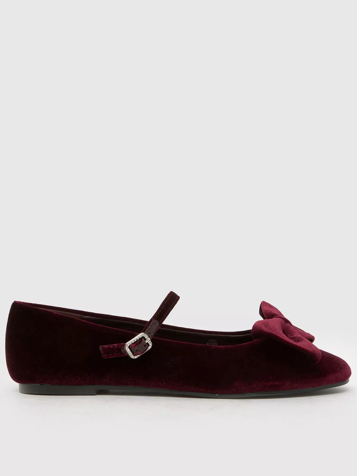SchuhJunior Laffy Velvet Bow Ballerina Shoes - Dark Red