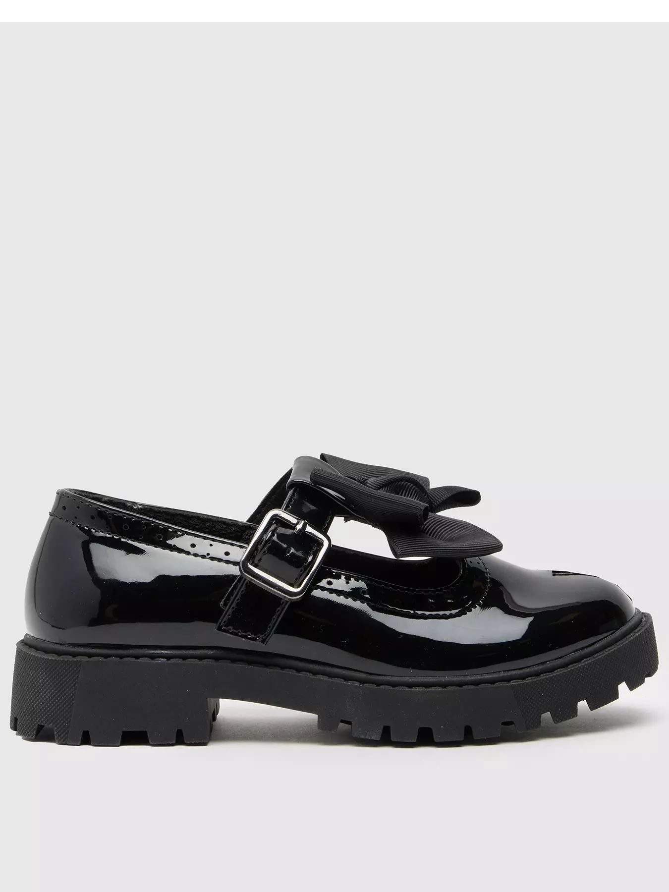 SchuhLollipop Feature Bow Tbar Junior Patent Shoes - Black
