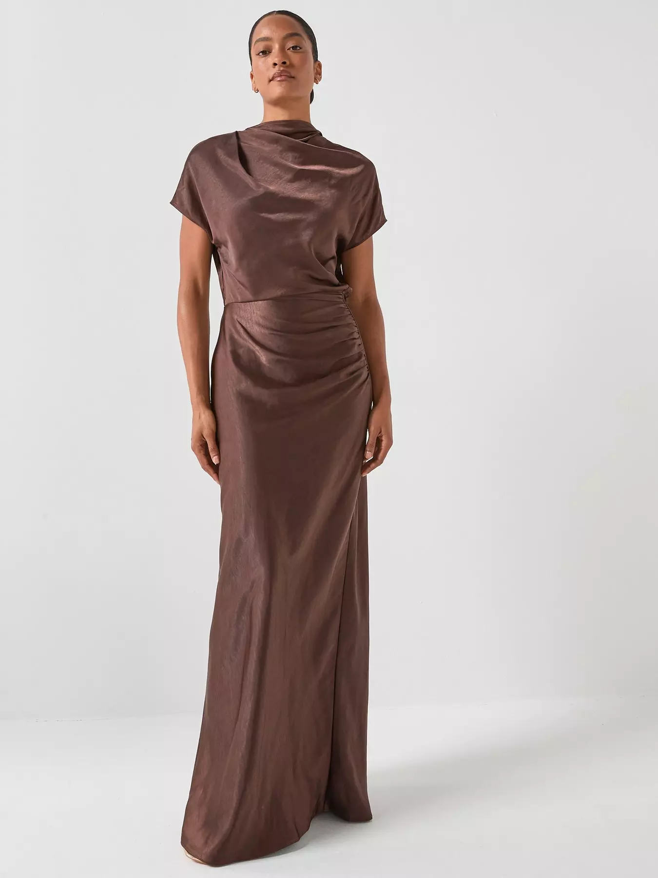Six StoriesBatwing high neck satin bridesmaid dress - Brown