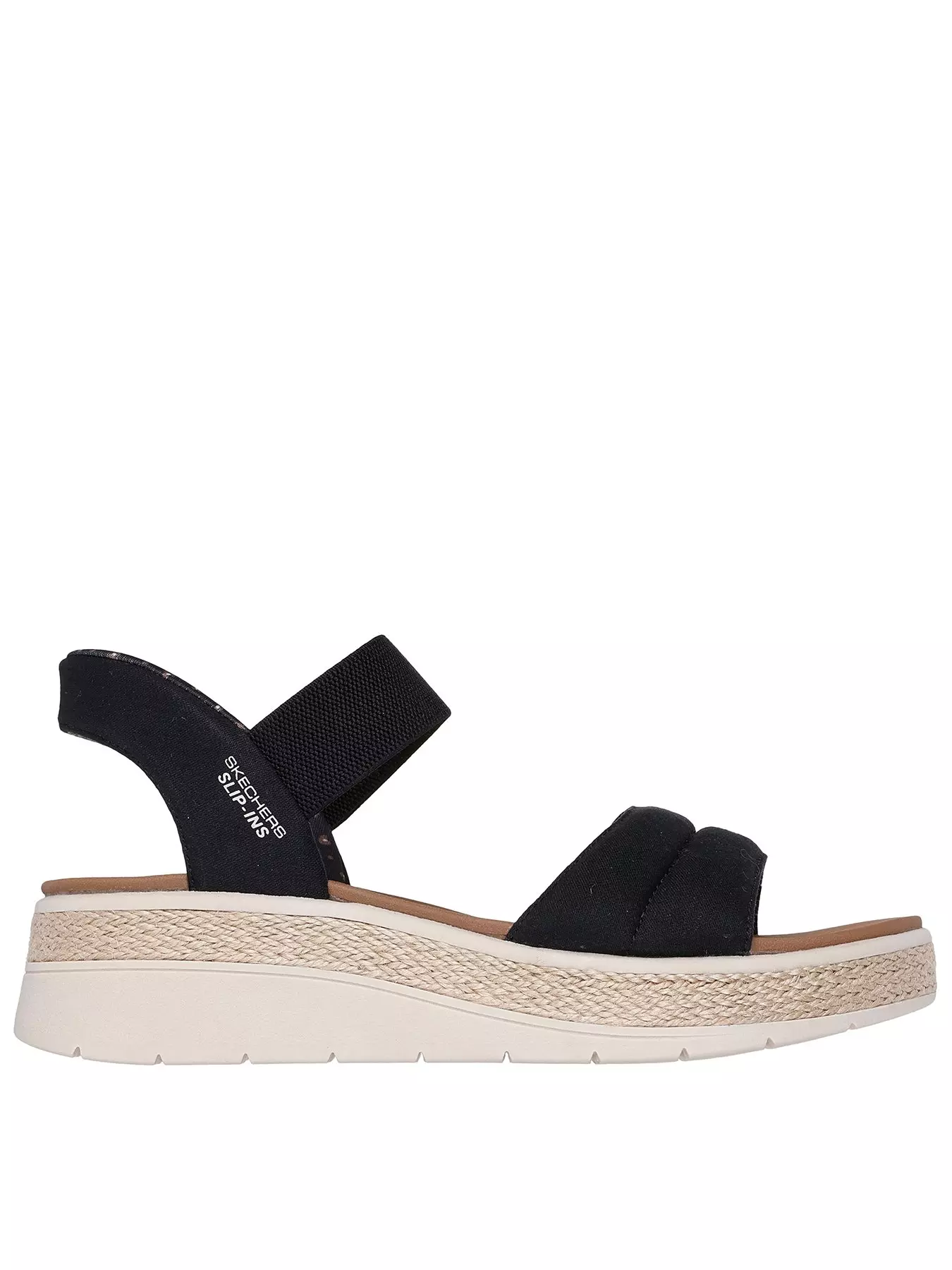 Step into leisurely breezy style wearing Skechers Hands Free Slip-ins: BOBS from Skechers Sun Ray. Designed with our Heel Pillow, this slip-on sandal features a padded canvas upper with a gore instep strap, jute midsole trim, Skechers Hands Free Slip-ins back heel, and a Skechers Plush Foam cushioned comfort footbed. BOBS from Skechers is committed to saving the lives of pets in need.- Material Content: Cotton,Polyester,Synthetic Rubber