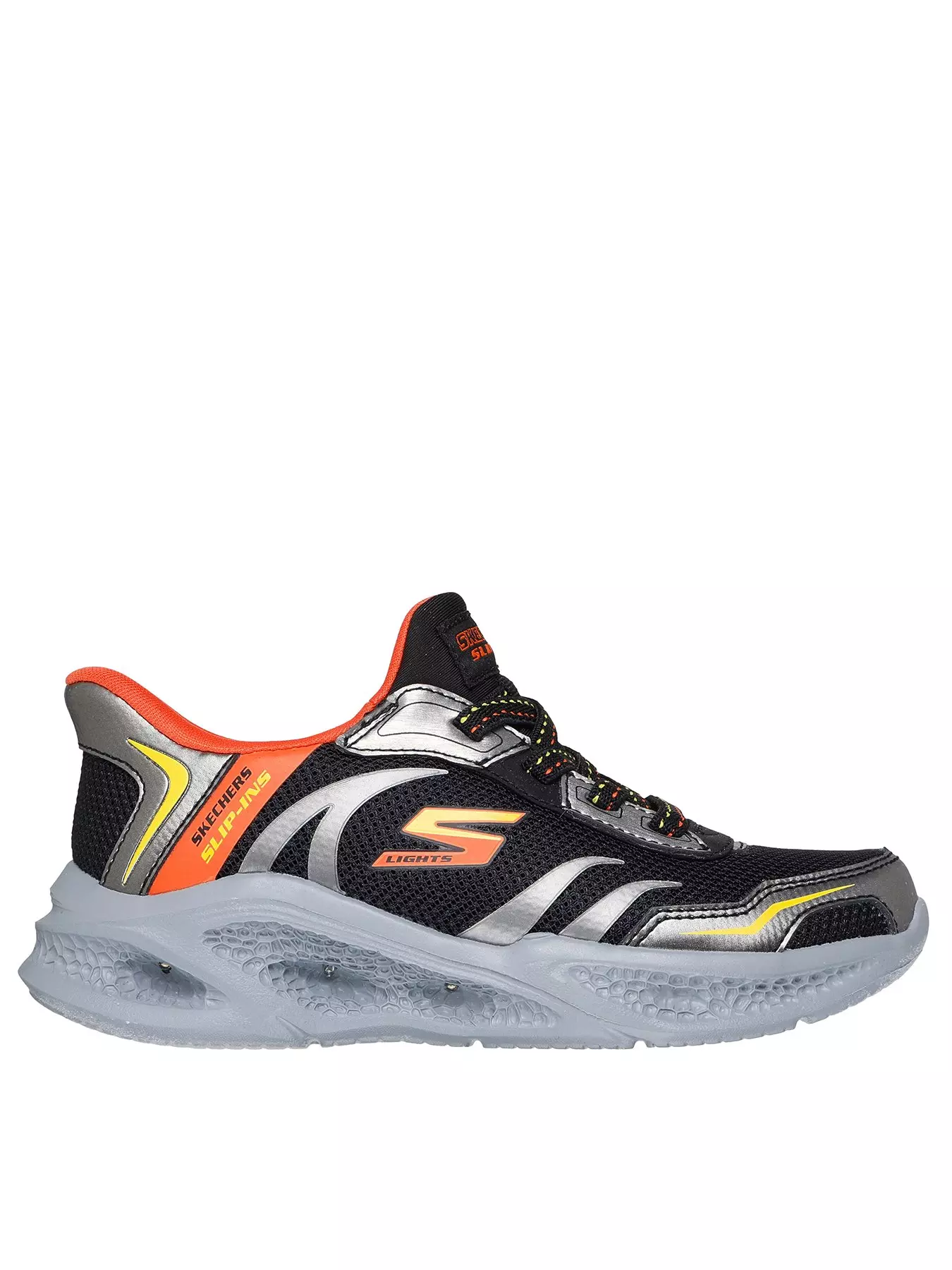 Illuminate your steps in sporty style and comfort with Skechers Hands Free Slip-ins S-Lights: Meteor-Lights - Brisk-Beams. Designed with our exclusive Heel Pillow, this light-up slip-on features a mesh and metallic hotmelt overlay upper with stretch la- Material Content: Synthetic,Polyester,EVA