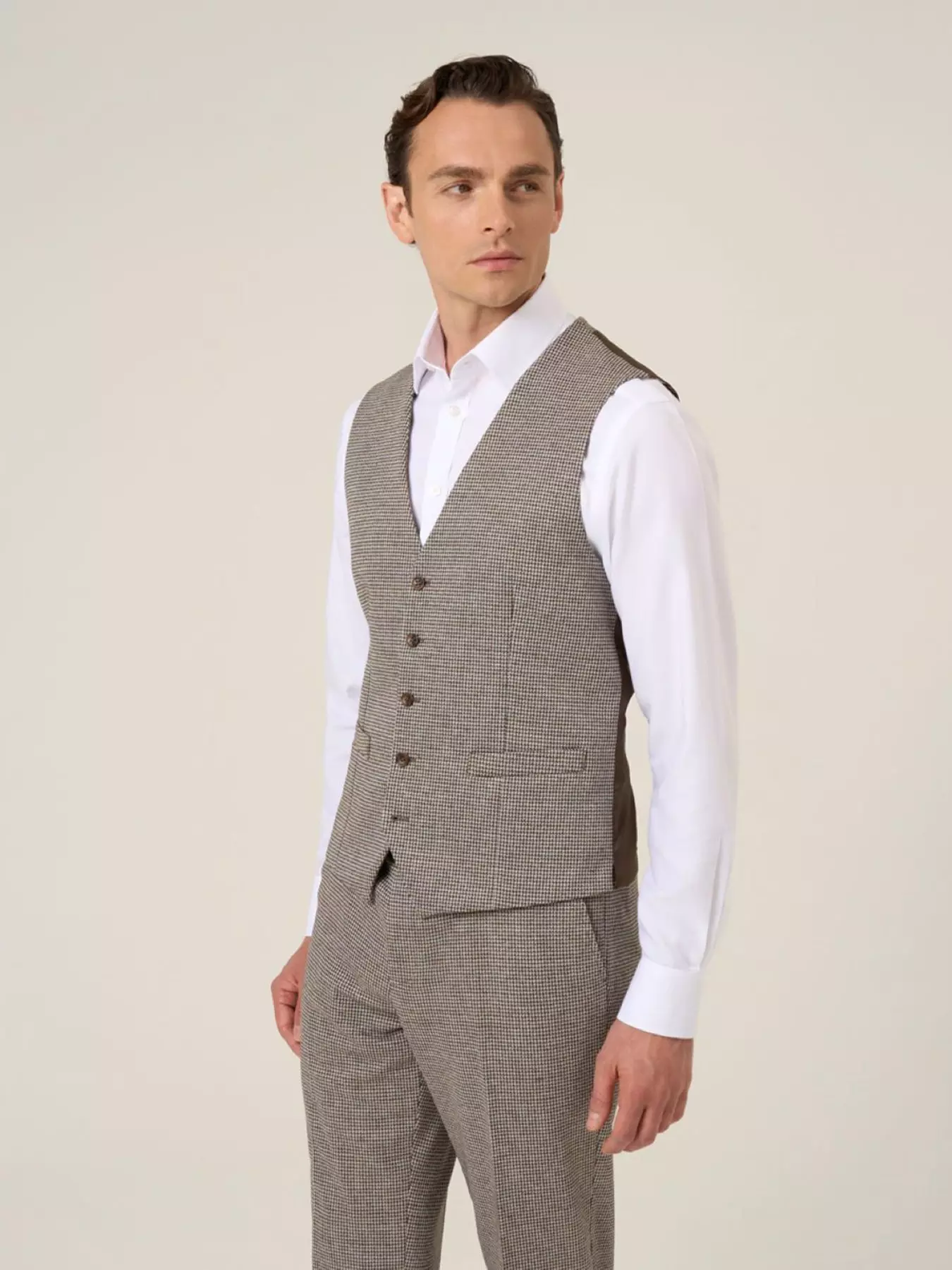 - Brown / stone houndstooth waistcoat in a tailored fit