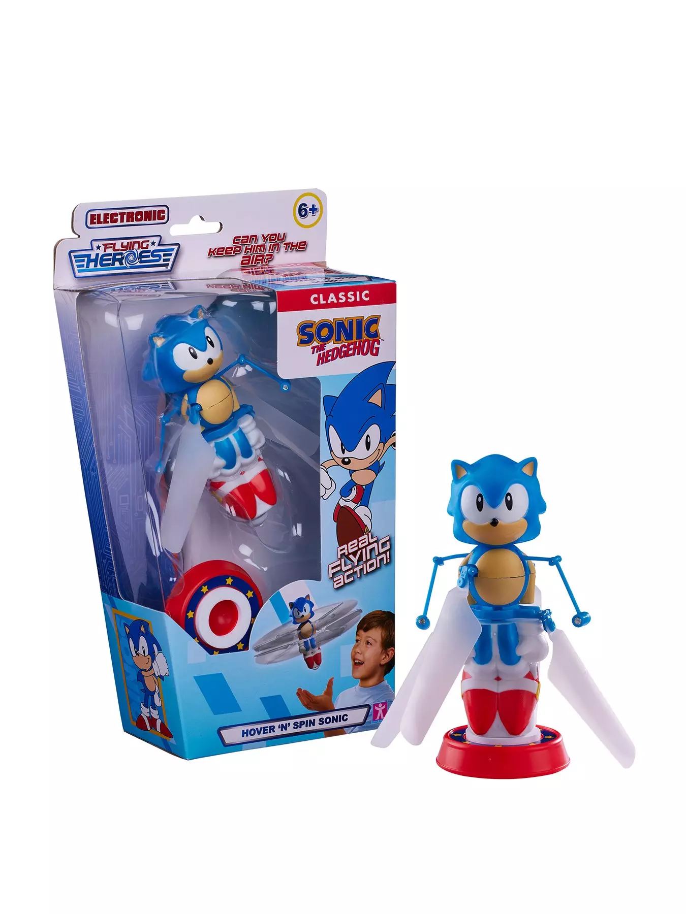 Take Flying Heroes to the next level with the Hover 'n Spin Sonic! With real flying action, Sonic takes to the air with motorised propellers and foot sensors to detect obstacles below. Simply place your hand beneath Sonic to guide him back up in the air.- Depth: 50 MM