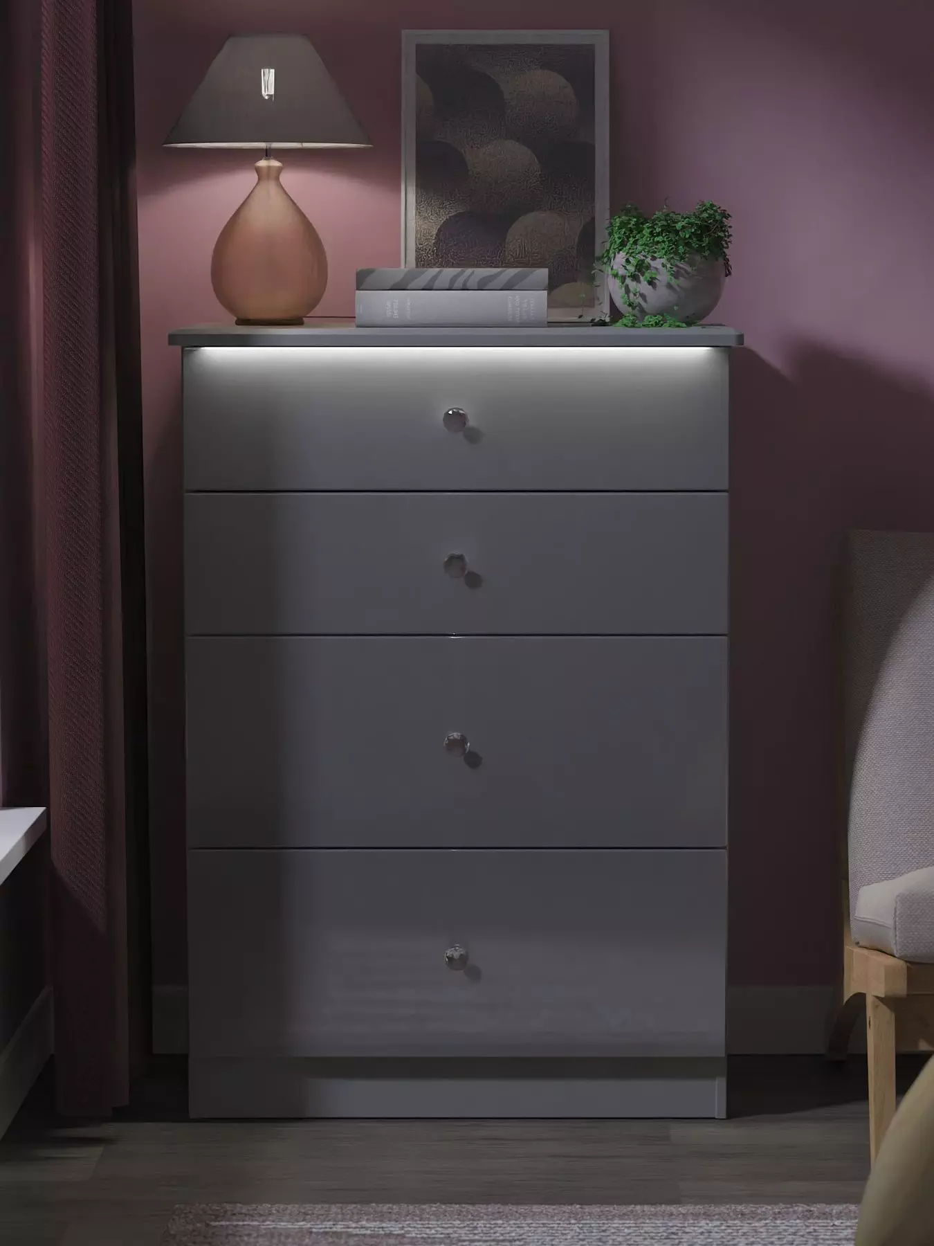 SWIFTLumiere Ready Assembled 4 Drawer Deep Chest with LED Lights