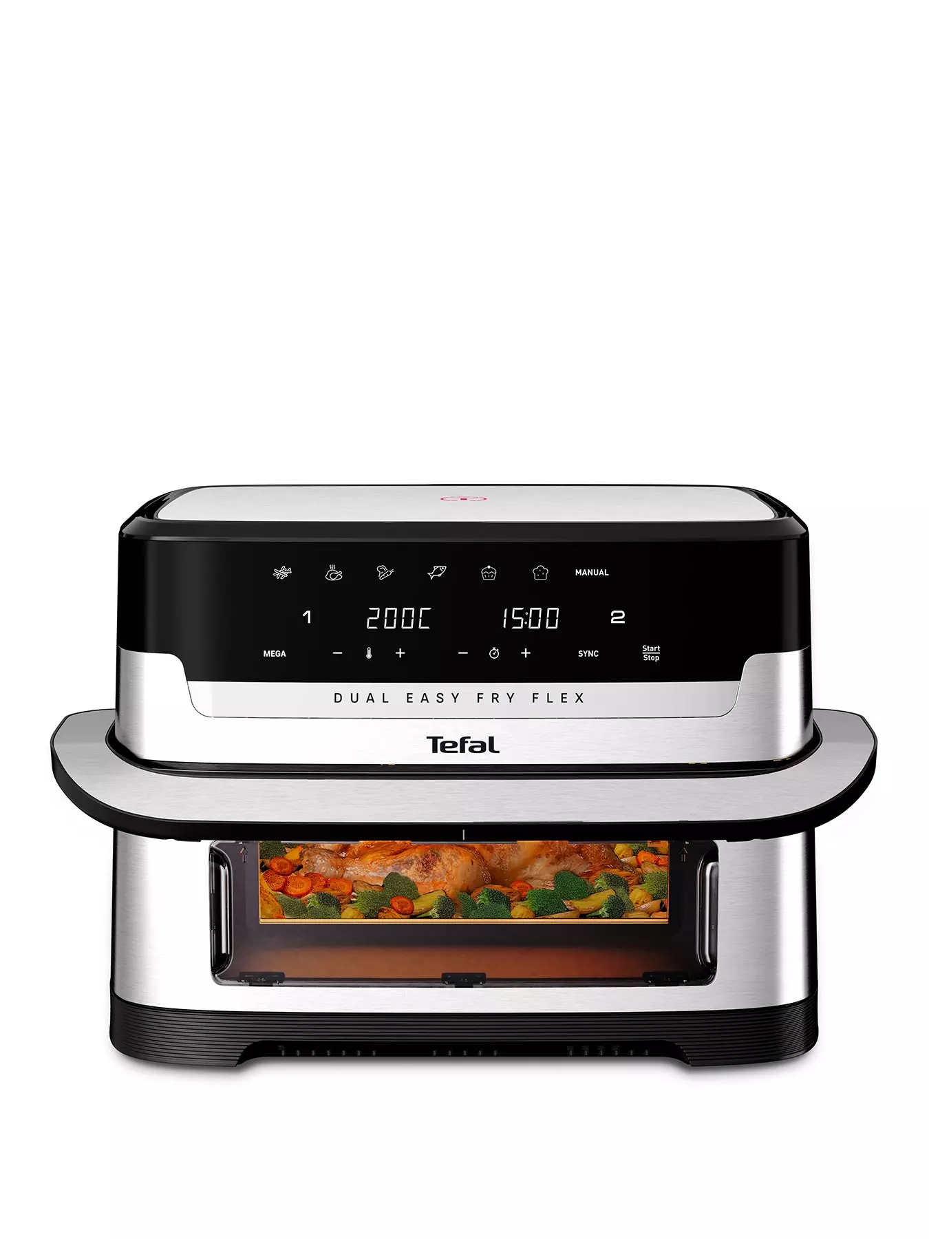 - Cook 2 foods at once. featuring 2 truly independent heating elements , with individual time and temperature controls.