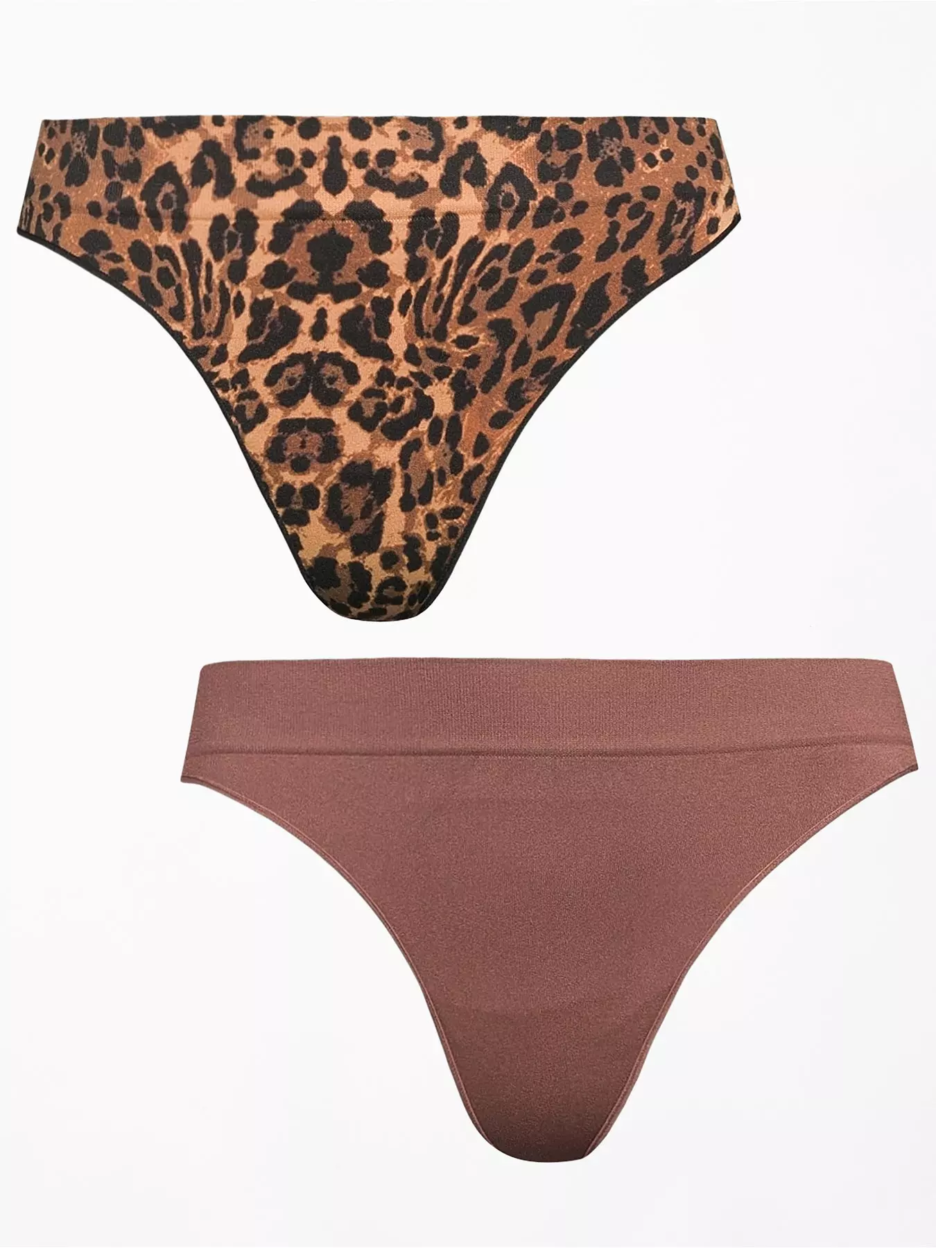 The Very Collection2 Pack Seamless Print And Plain Thongs - Brown