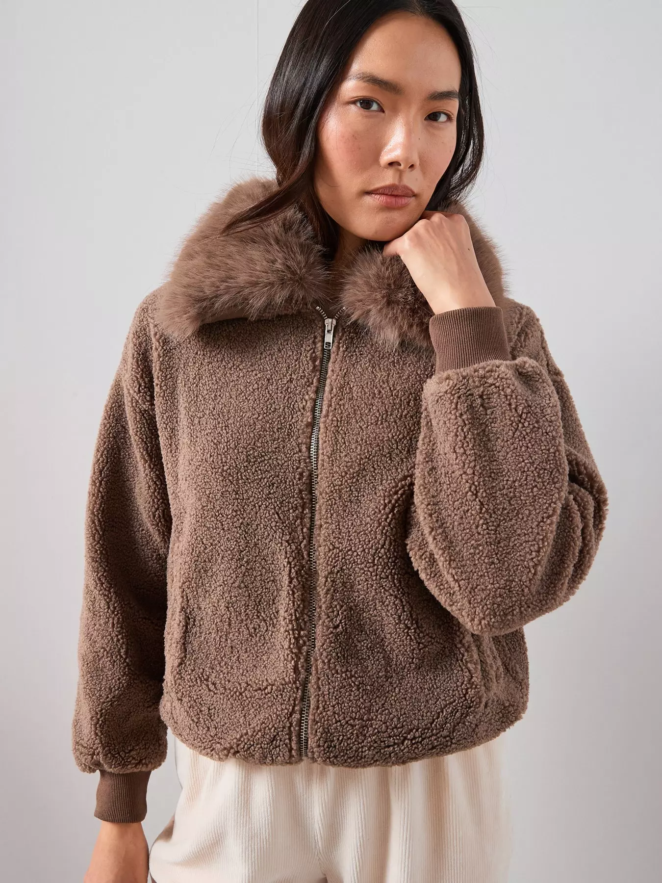 The Very CollectionBorg With Faux Fur Collar - Brown