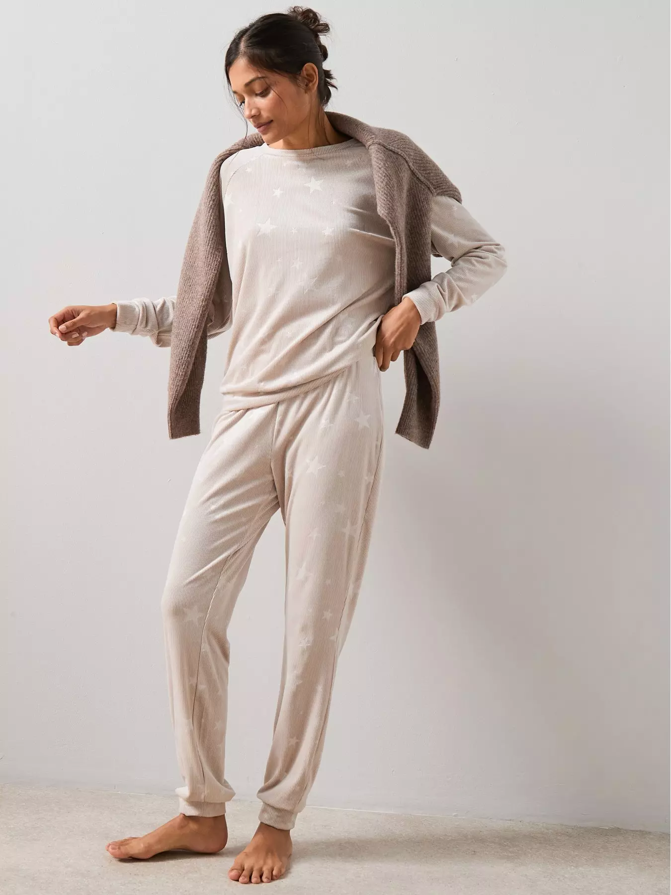 The Very CollectionCarved Star Ribbed Loungewear Set - Cream