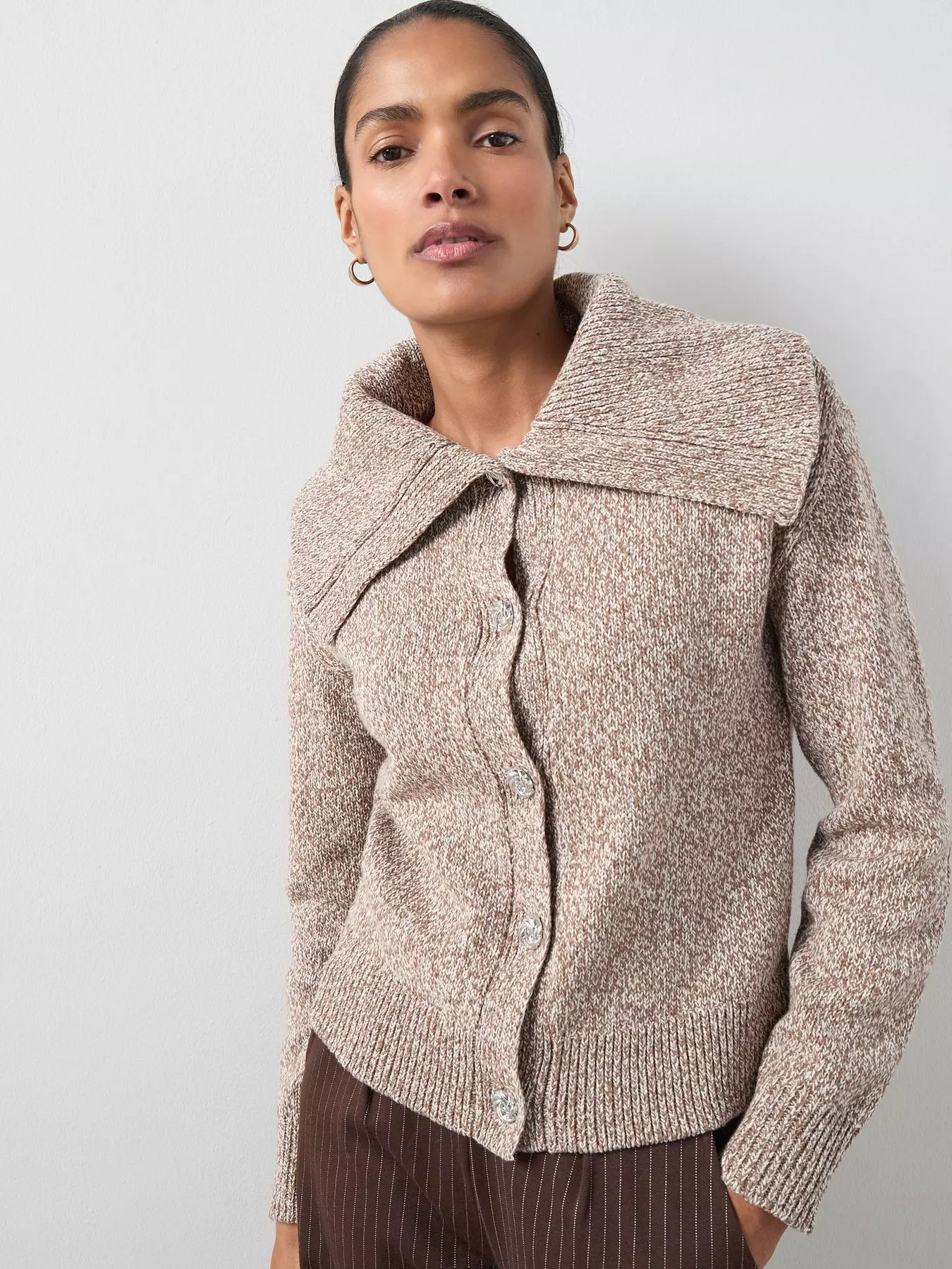 The Very Collection Collared Neck Twist Yarn Cardigan With Wool - Brown