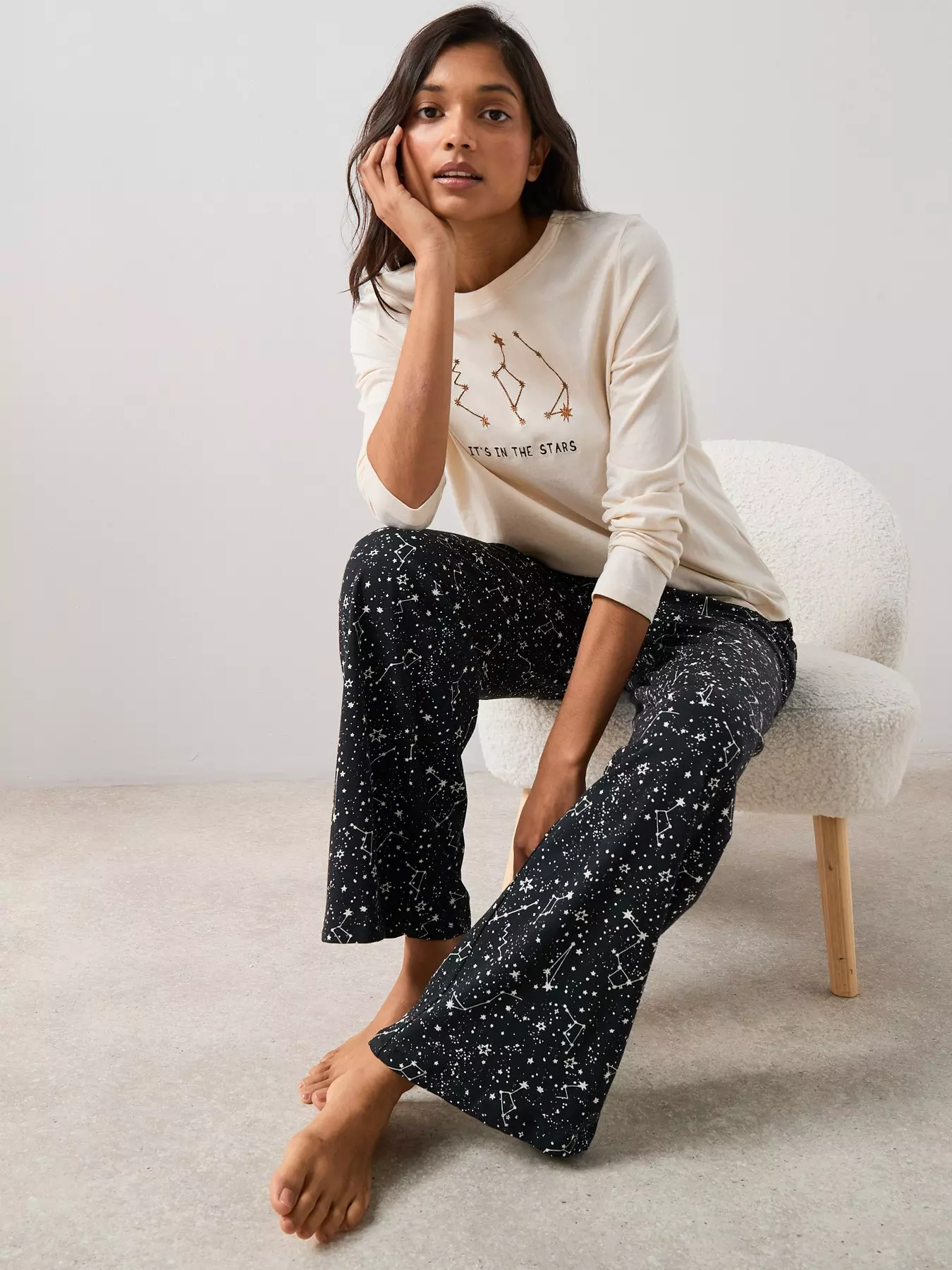 - Long Sleeve Constellations Star Print Tshirt With Wide Leg Bottom Pj Set by The Very Collection