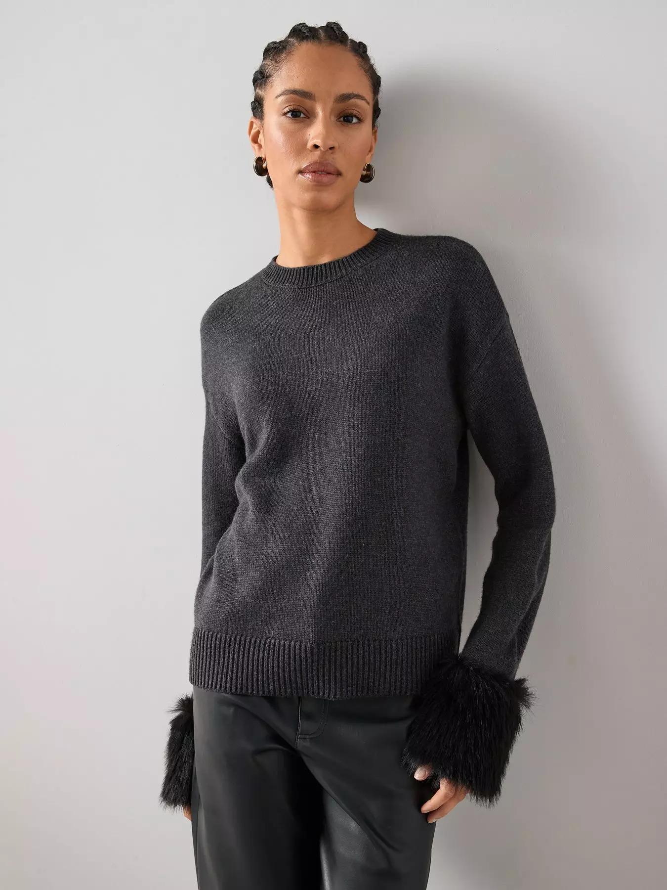 - Crew Neck Detachable Fur Cuff Jumper With Wool by The Very Collection