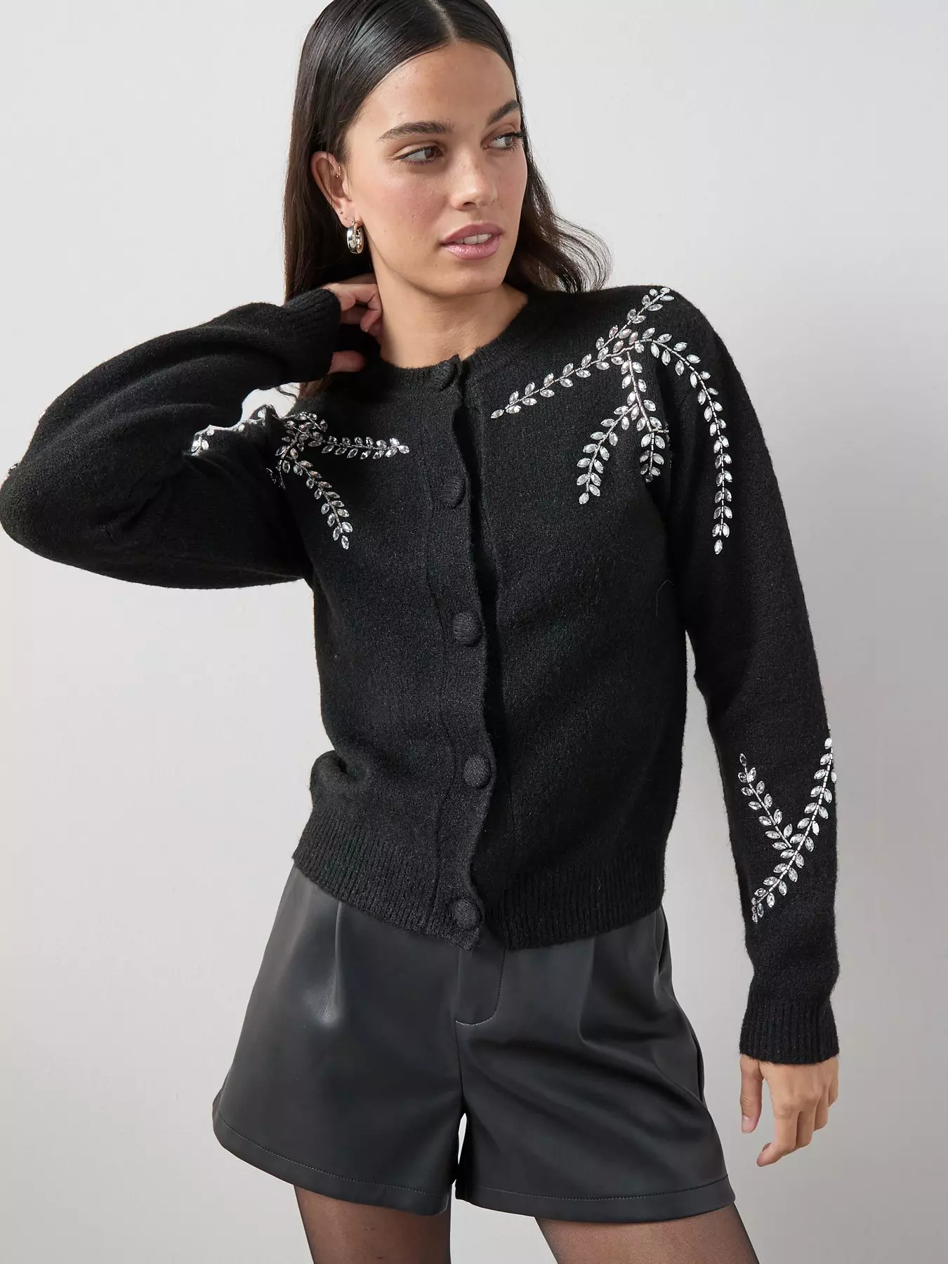 The Very Collection Crew Neck Embellished Cardigan With Wool - Black