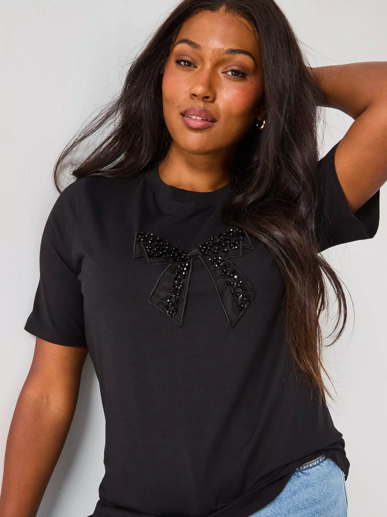 The Very Collection CurveEmbellished Bow T-Shirt - Black