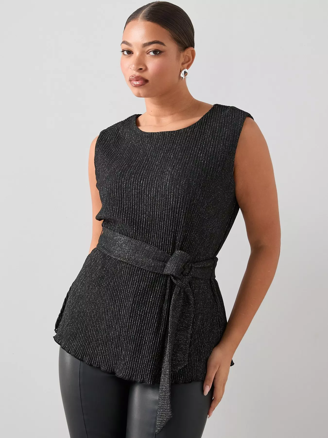 - Lurex Plisse Belted Tunic Top by The Very Collection Curve