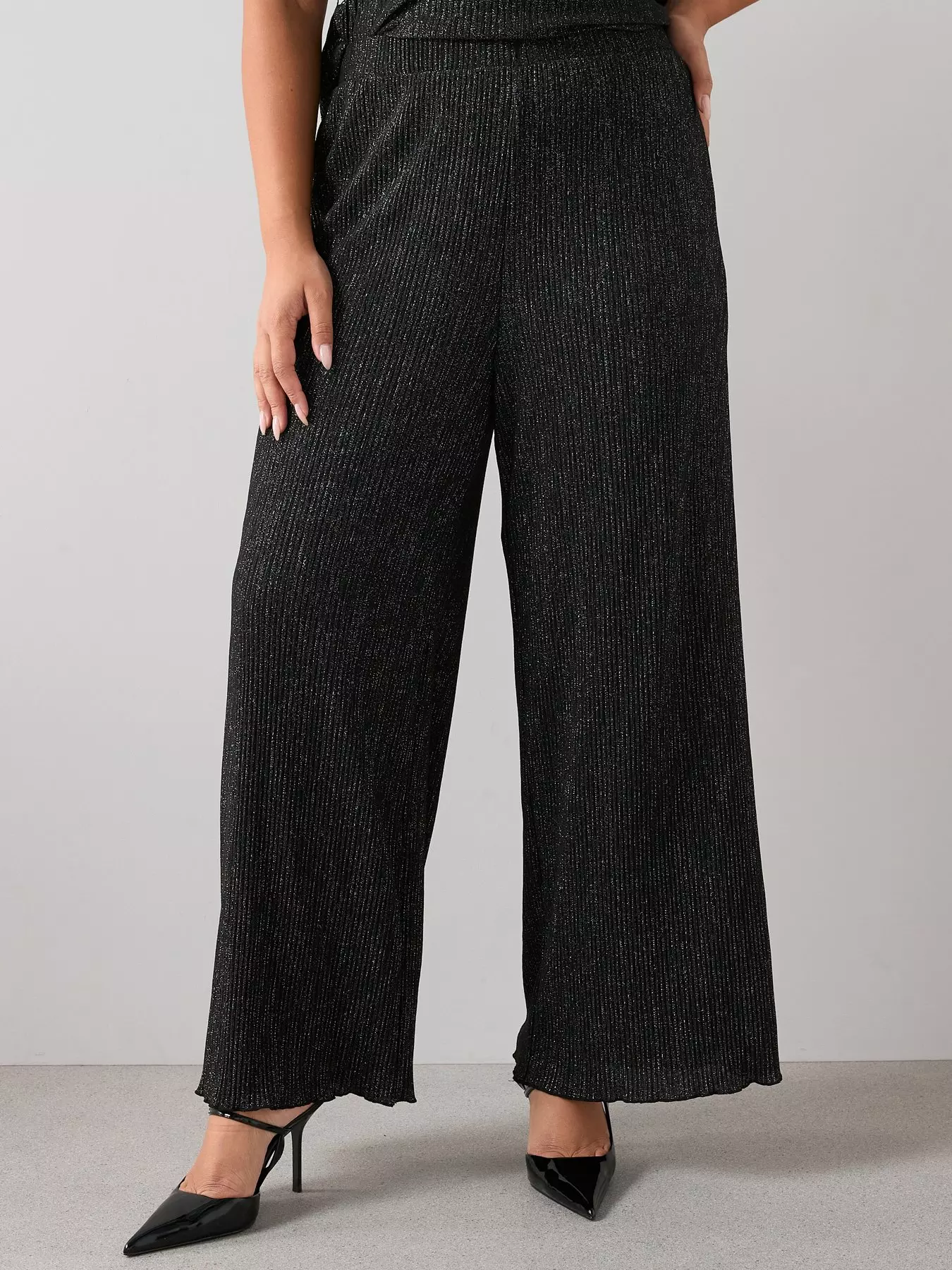 The Very Collection CurveLurex Plisse Wide Leg Trouser Co-Ord - Black