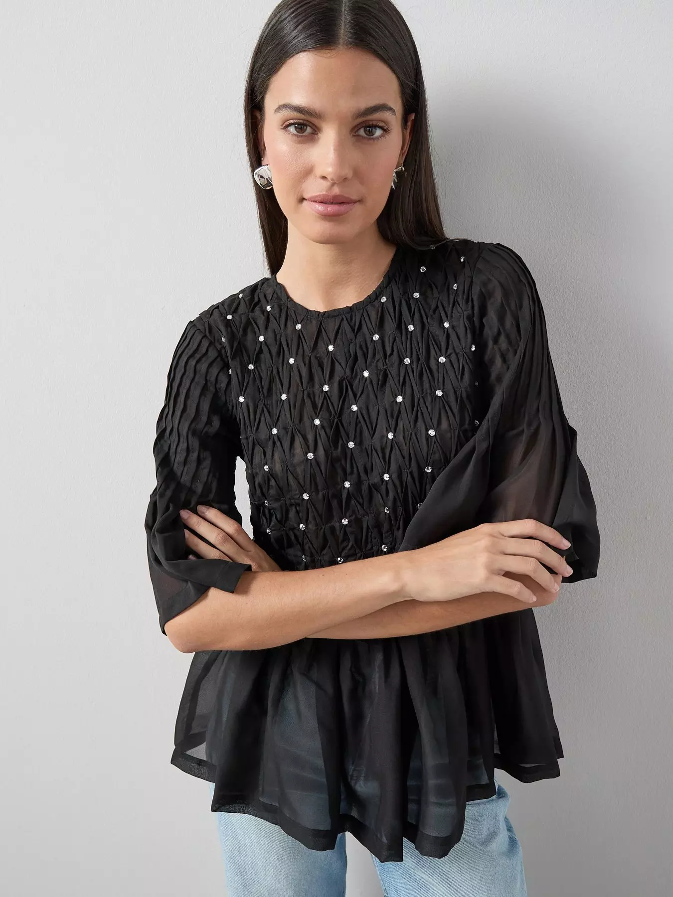 The Very CollectionEmbellished Peplum Top - Black