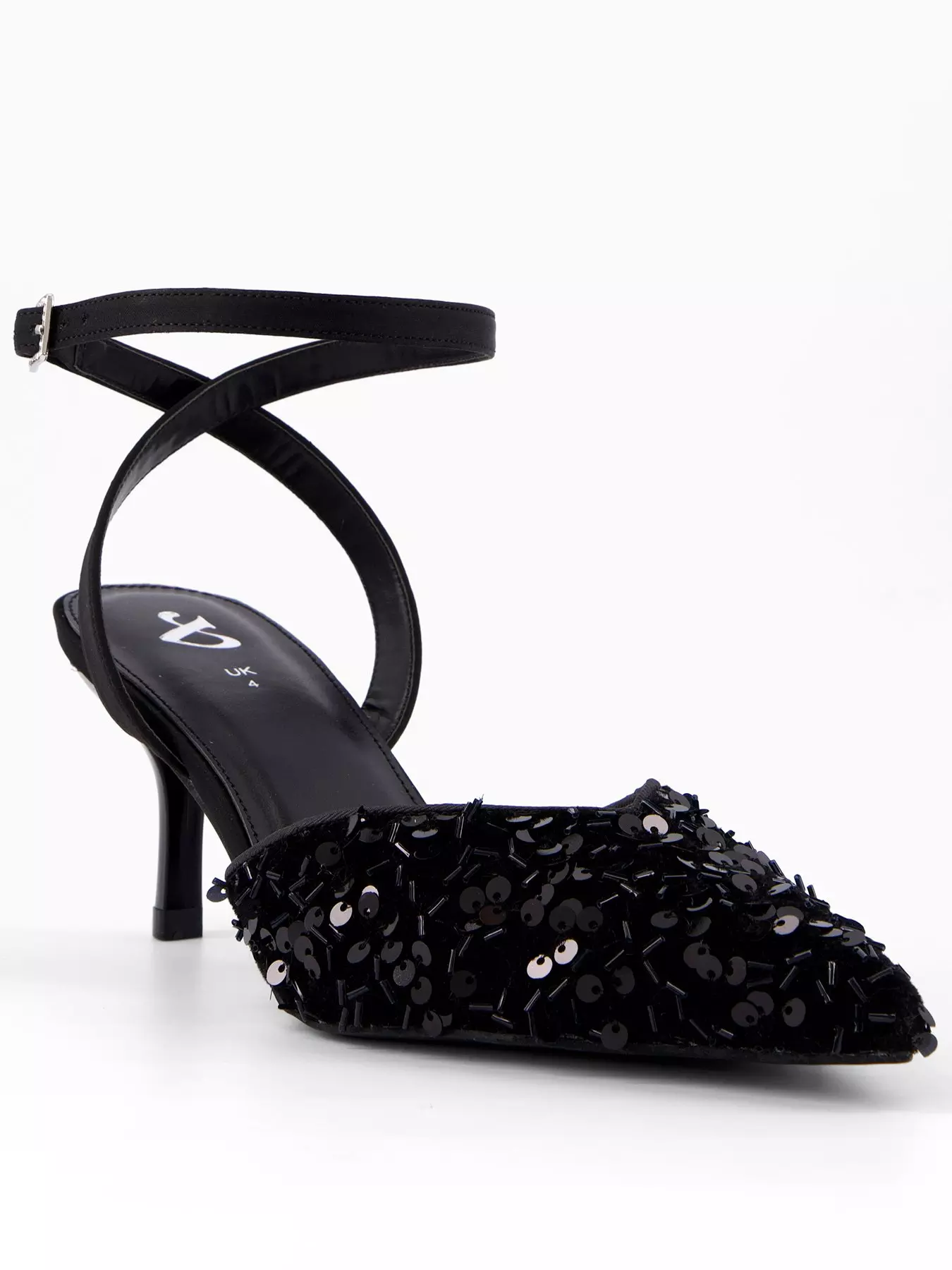 The Very CollectionEmbellished Pointed Kitten Heel - Black