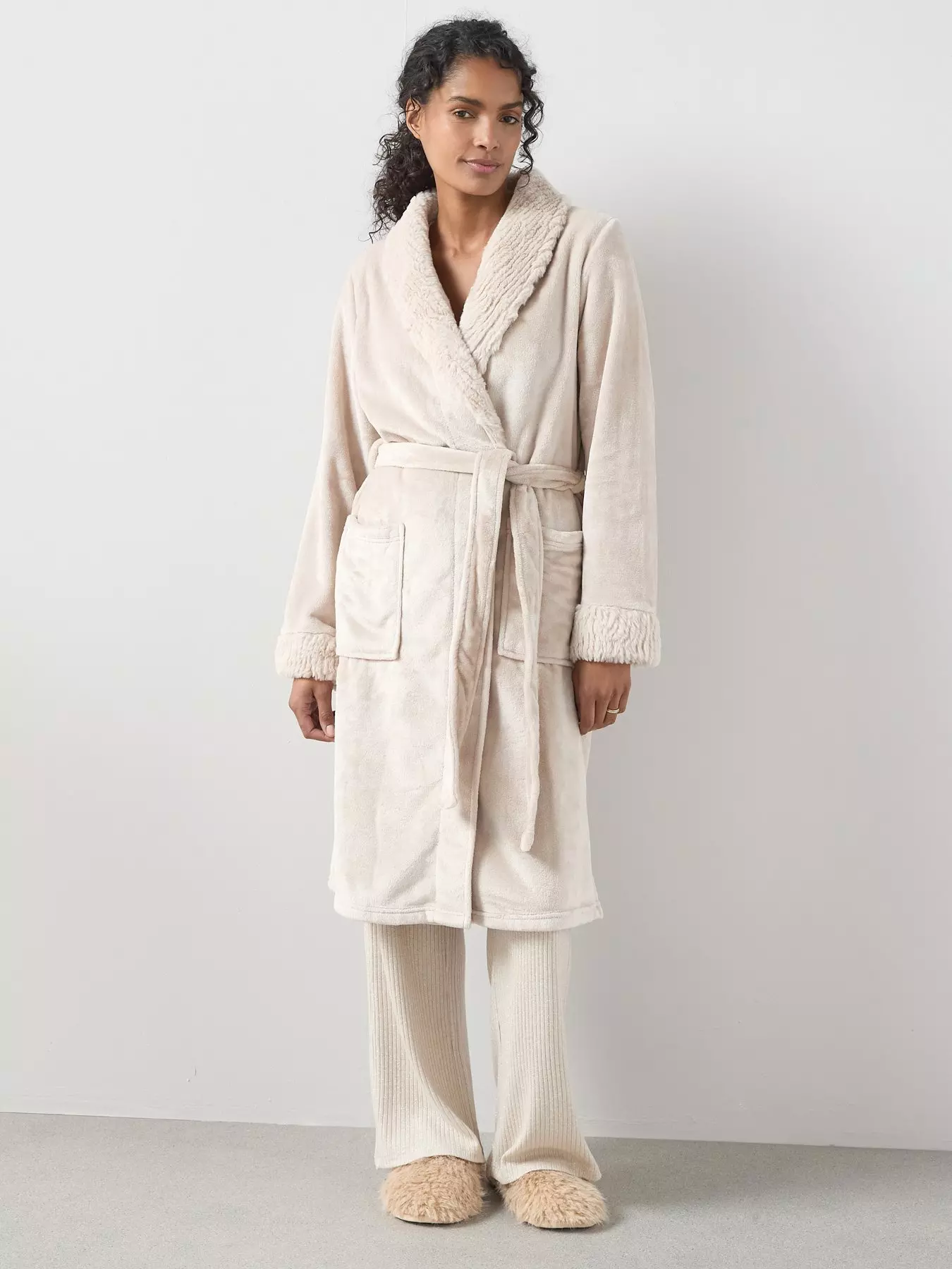 The Very CollectionFaux Fur Trim Dressing Gown - Cream