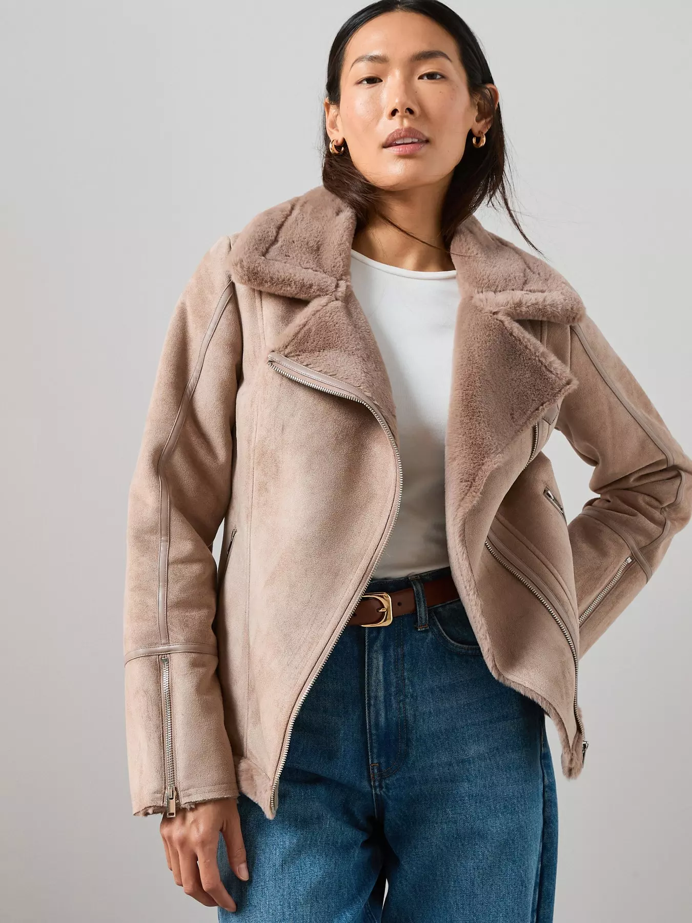 The Very Collection Faux Shearling Aviator Jacket - Mink