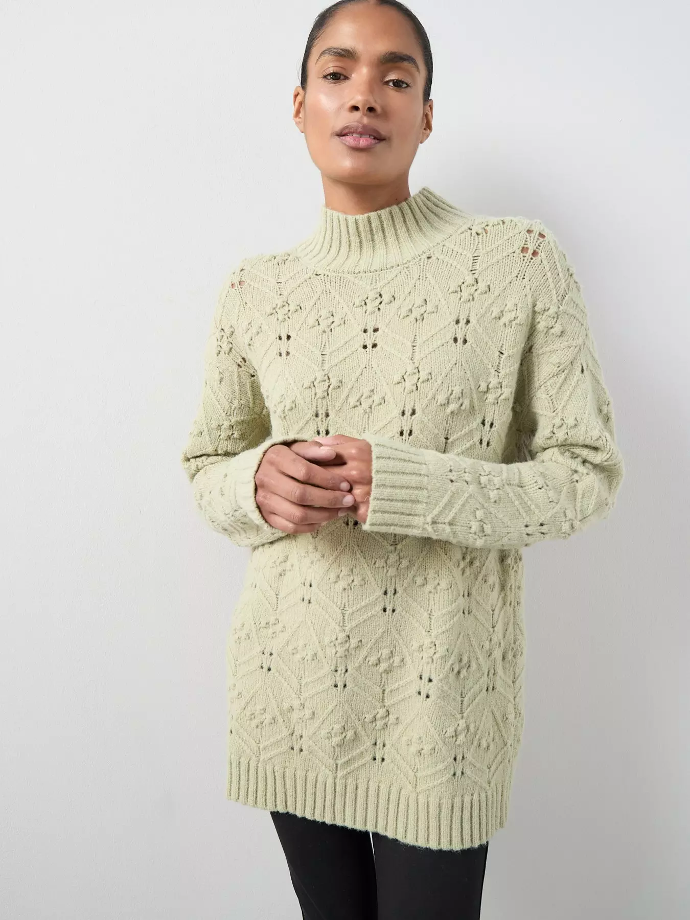 - Funnel Neck Open Stitch Detail Longline Jumper - Sage by The Very Collection