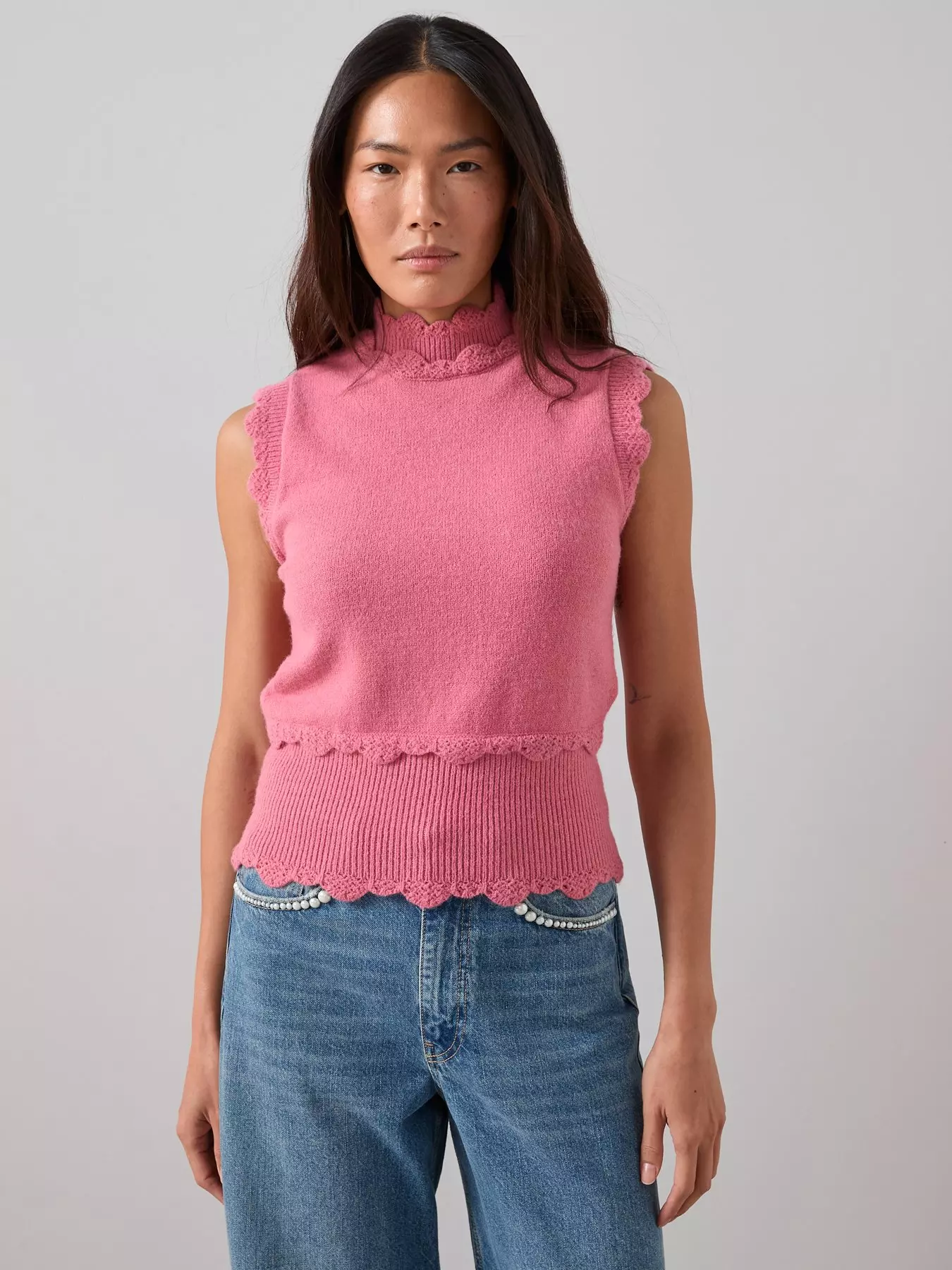 The Very CollectionFunnel Neck Picot Trim Sleeveless Vest - Pink