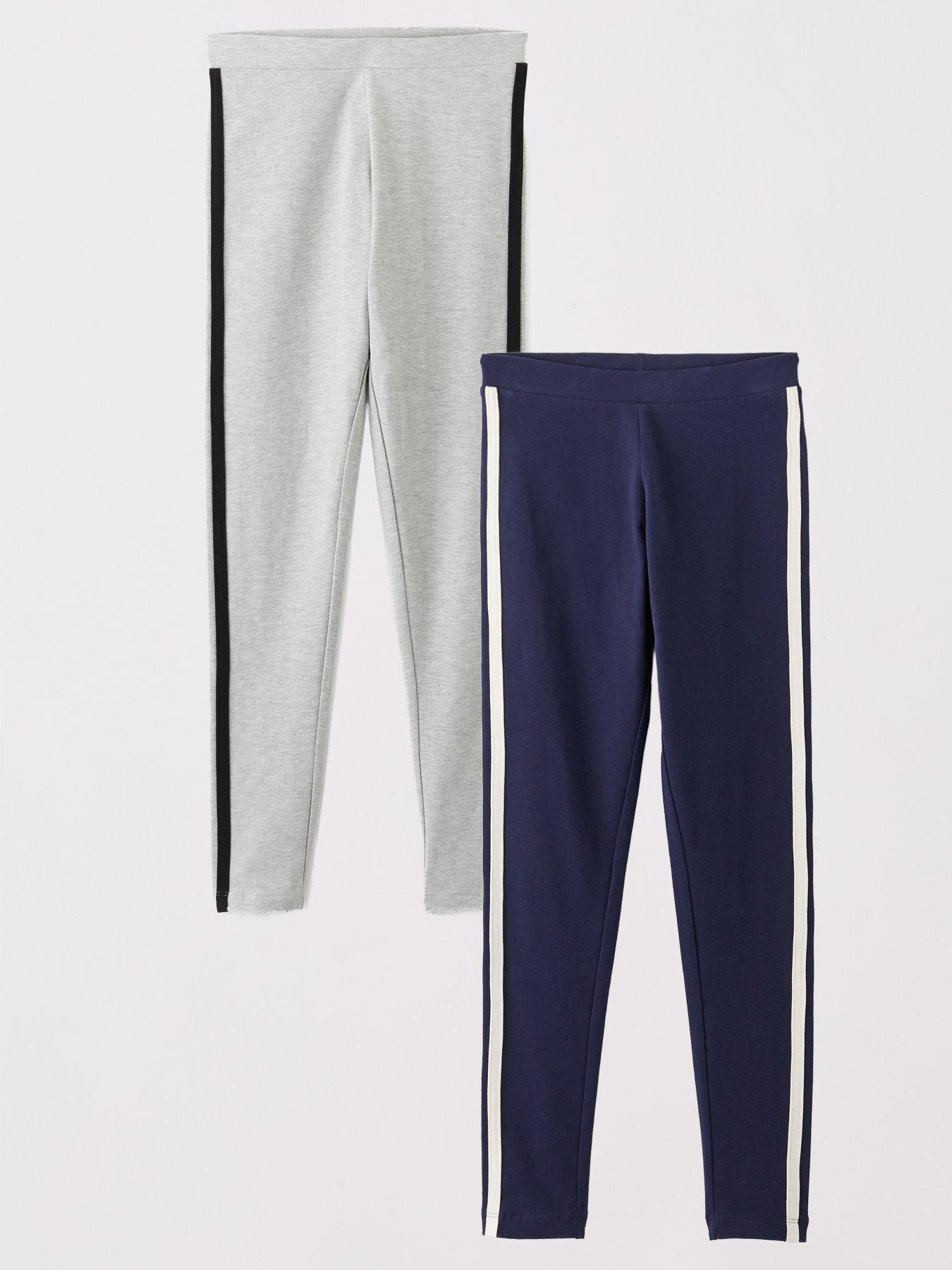 The Very Collection Girls 2 Pack Cotton Legging With Side Piping Detail - Multi