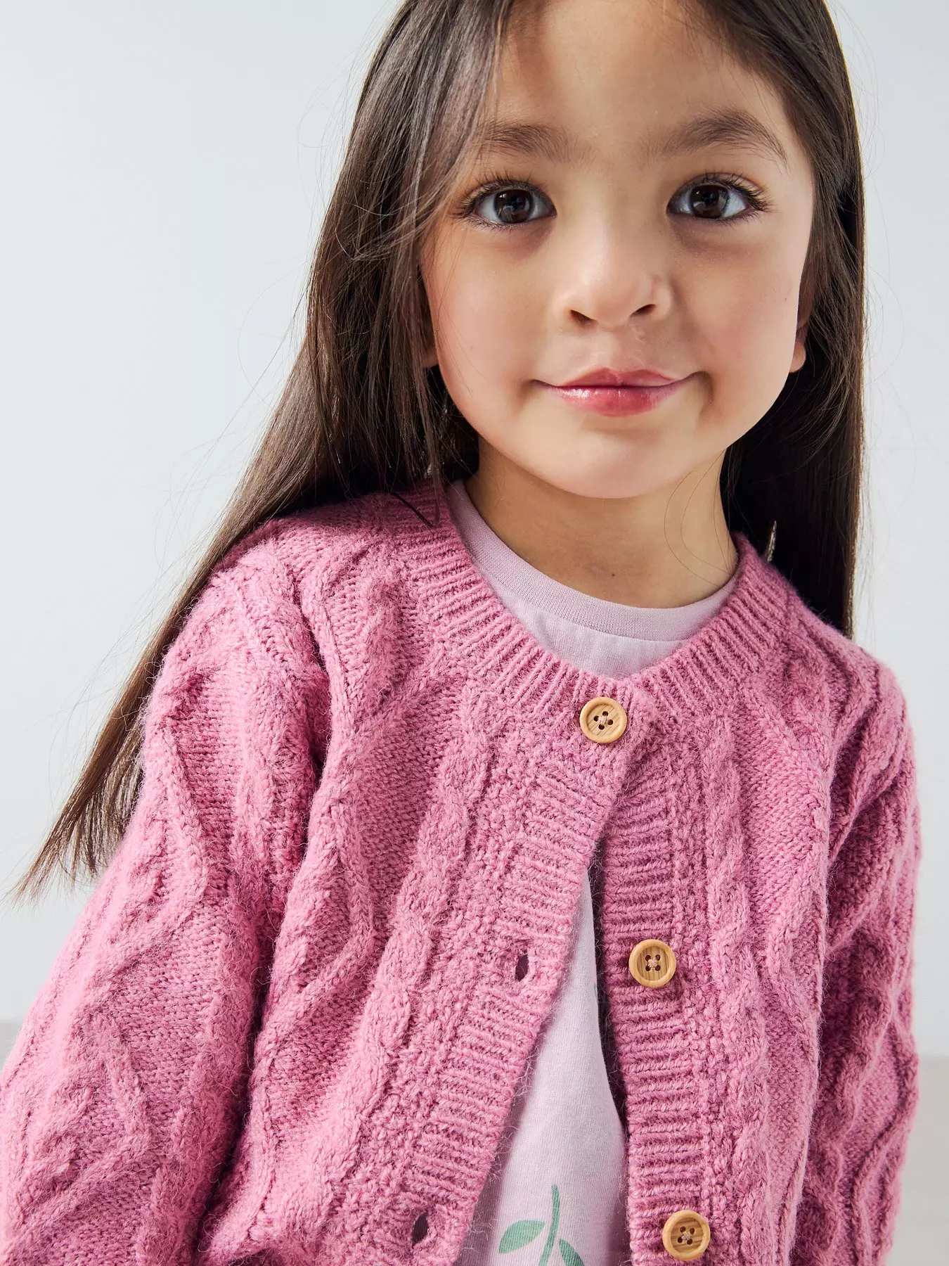 The Very CollectionGirls Chunky Cable Knit Cardigan - Dusky Pink